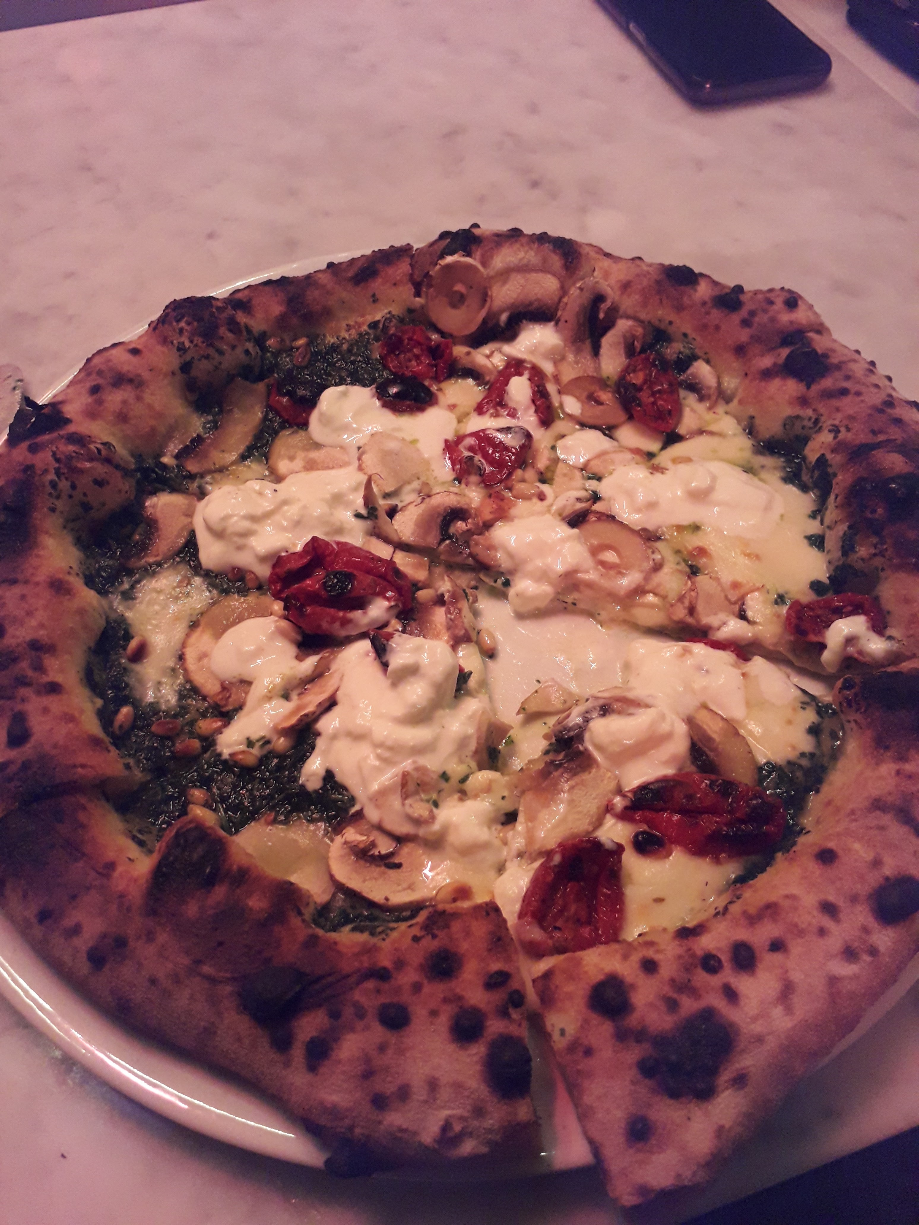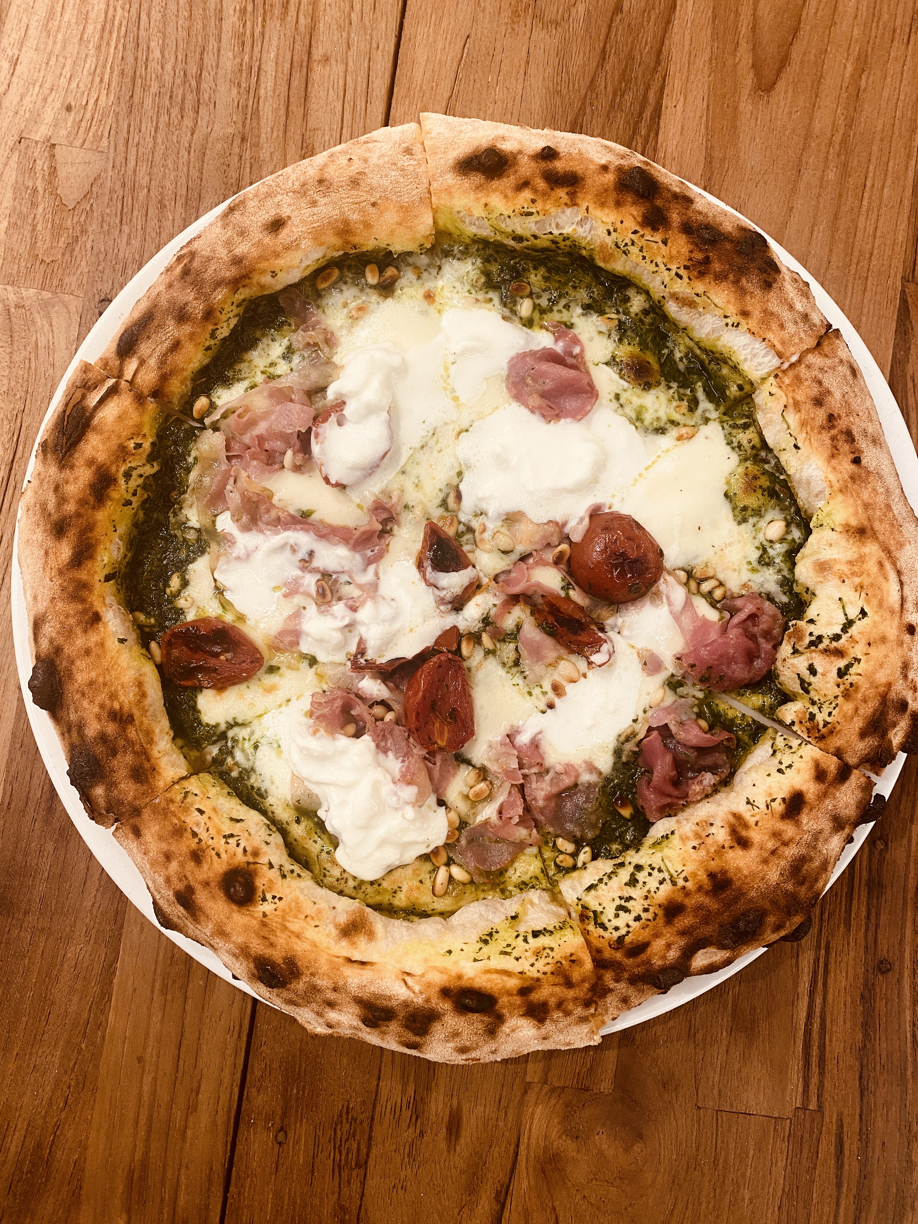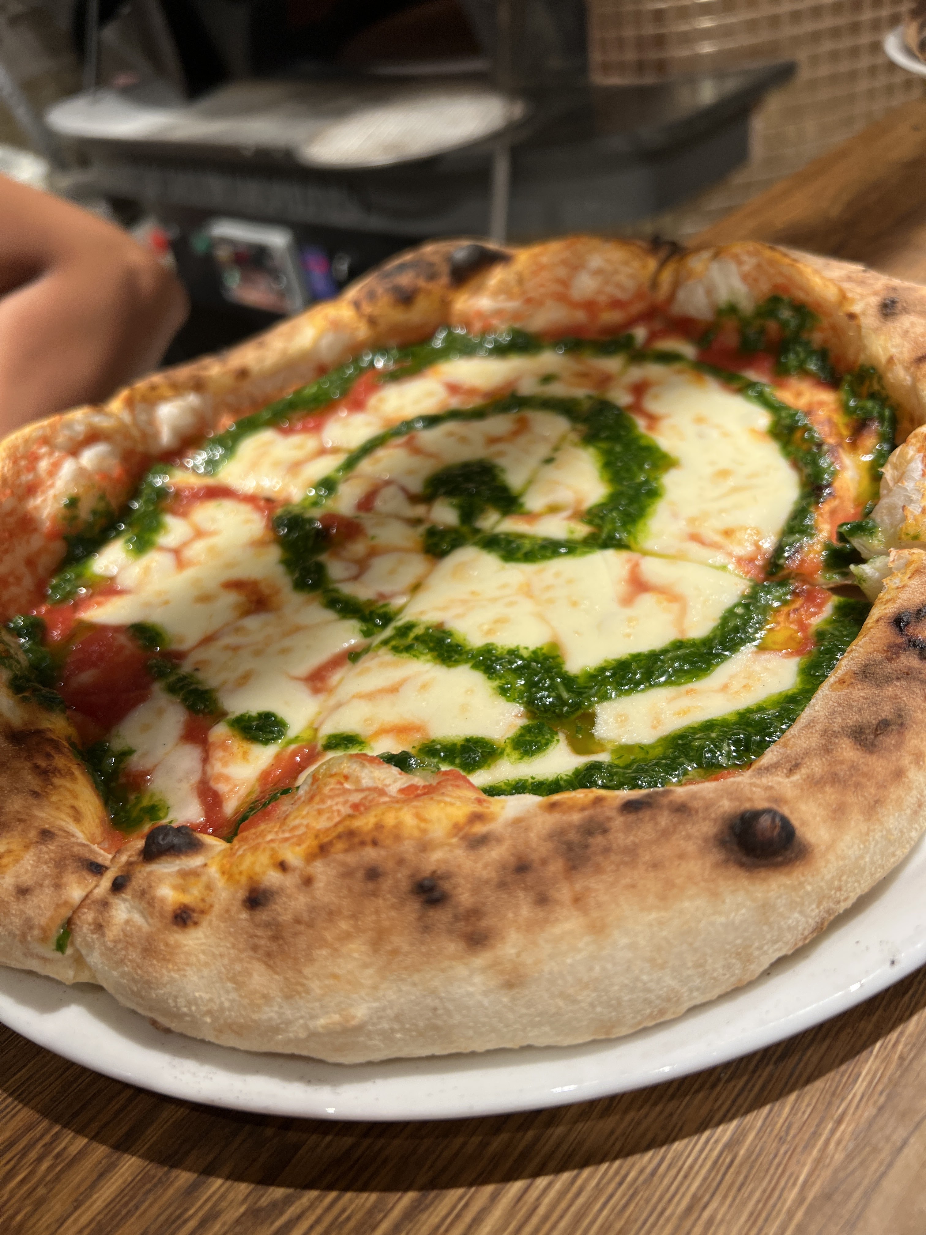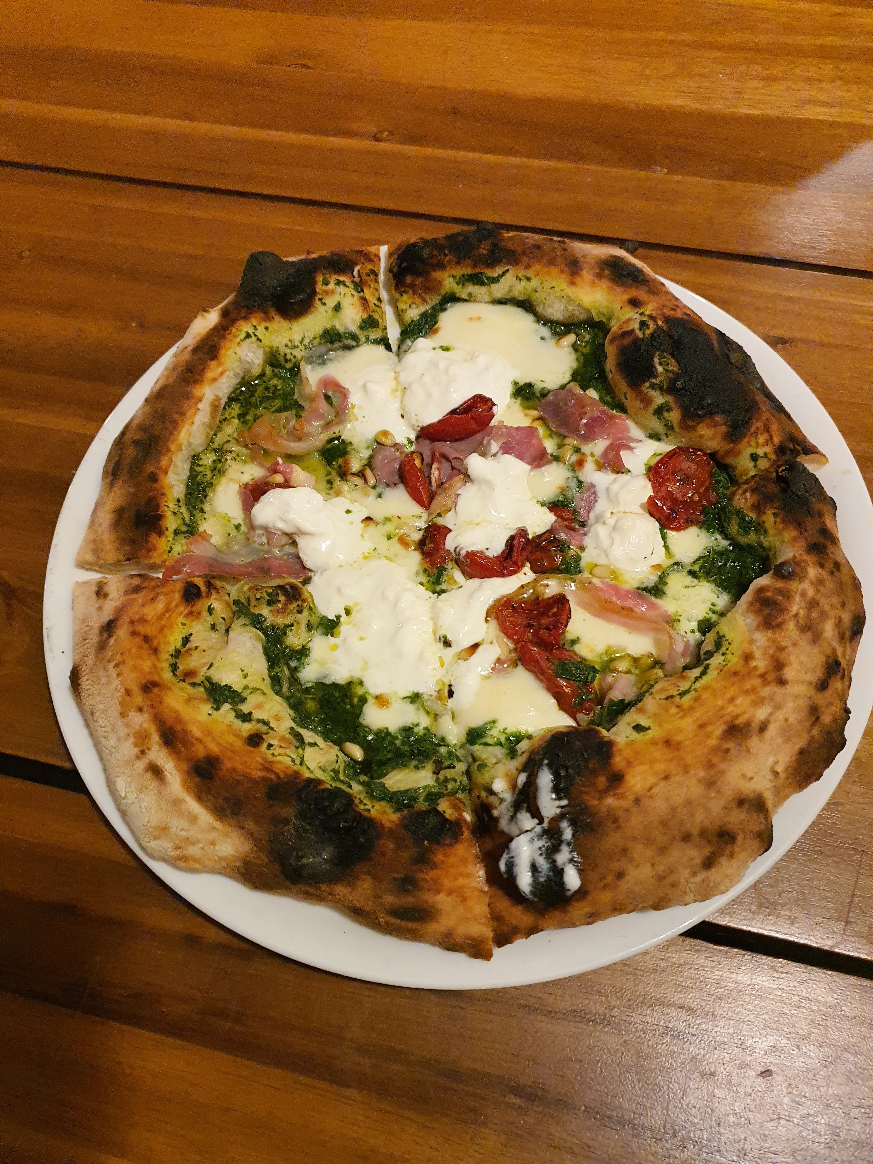 Meilleure pizza de ma Life ! (Et je reviens d’Italie…..) Pâte napolitaine, bons produits, cuisson parfaite. Point d’honneur sur la pesto verde… 🤌🏼