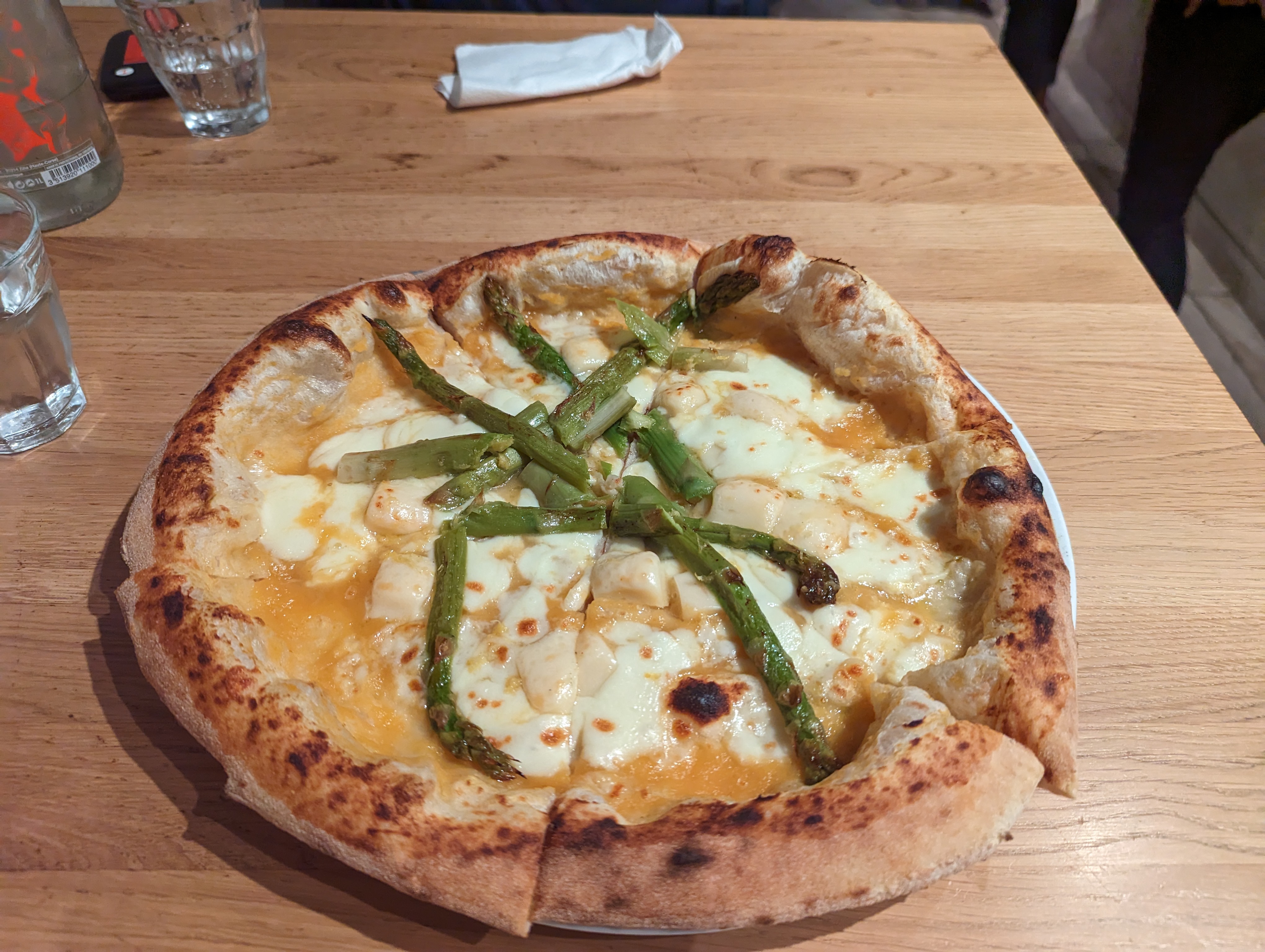 Voilà enfin de la vrai pizza napolitaine ! Une pâte ultra légère et aéré, avec uniquement des produits italien et de saison avec une pizza du moment travailler chaque mois ! Merci à l’équipe très à souriante et agréable !