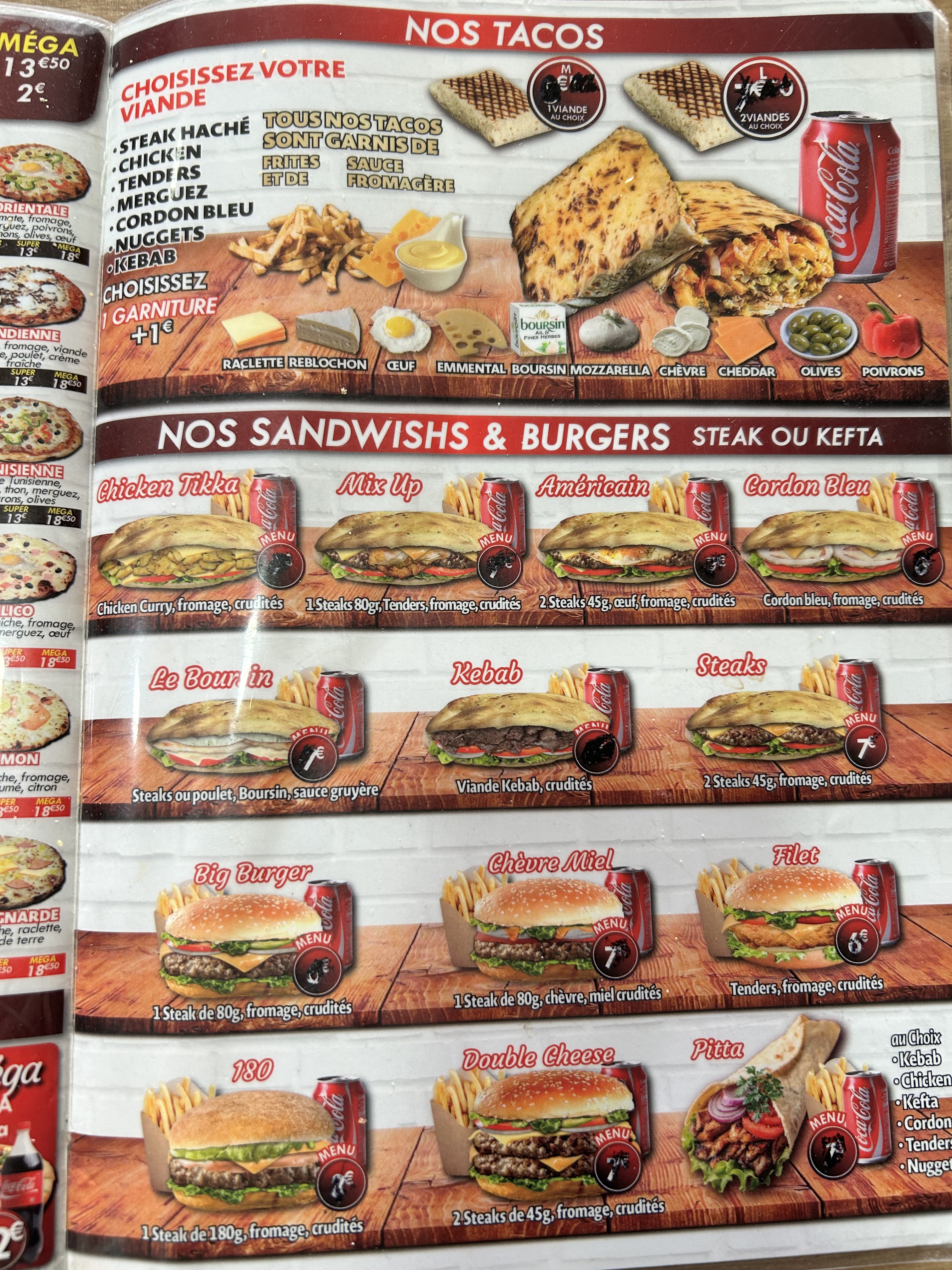 Pizza super bonne tacos aussi et tendres très bon