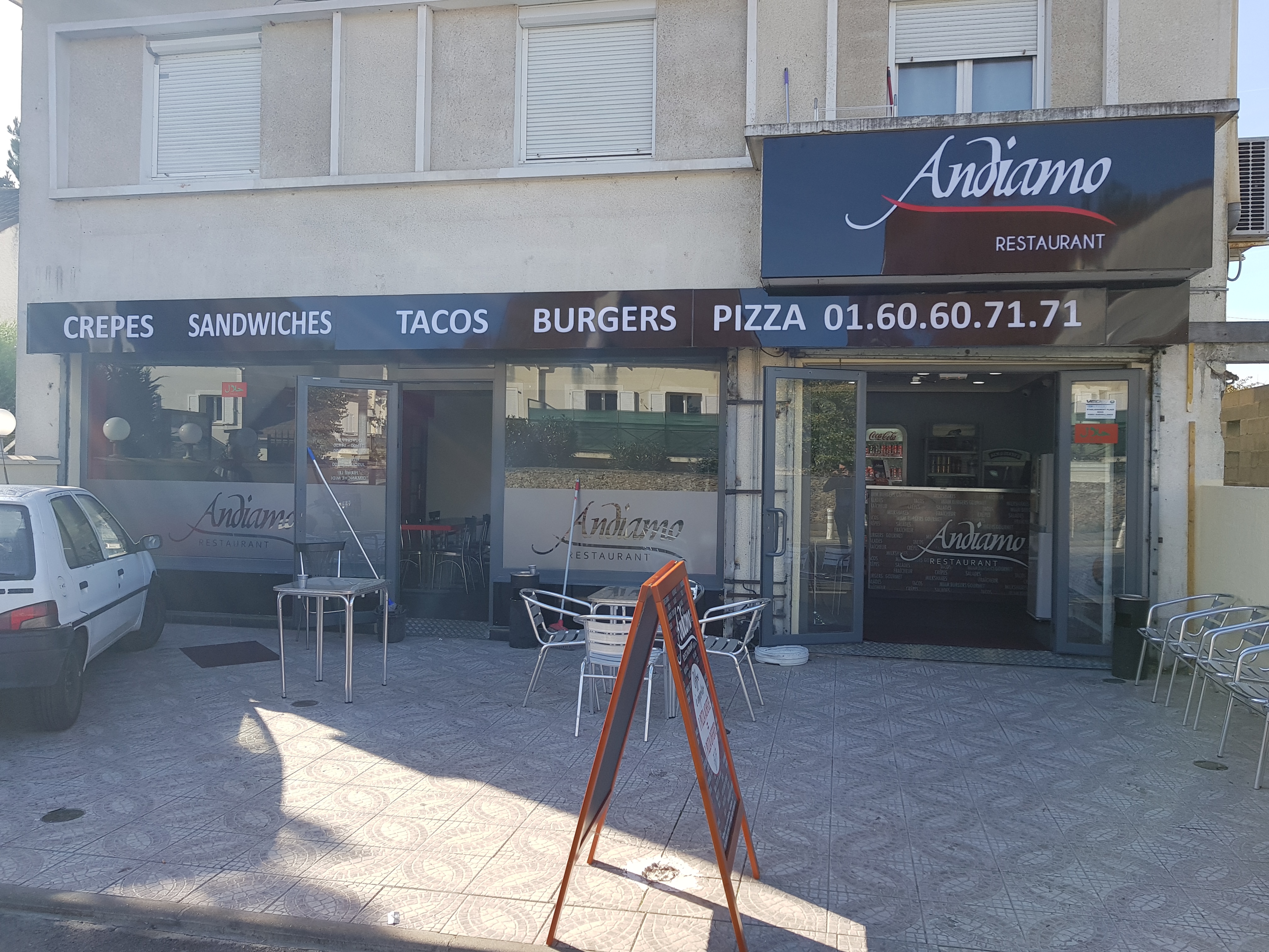 Vous pouvez commander sur place à emporter, honnêtement la meilleure pizzeria de combs la ville seul bémol pour se garer difficile ,2 méga pizza pour 20 euros après vous avez différentes variétés de desserts et plats et une terrasse pour manger en extérieur