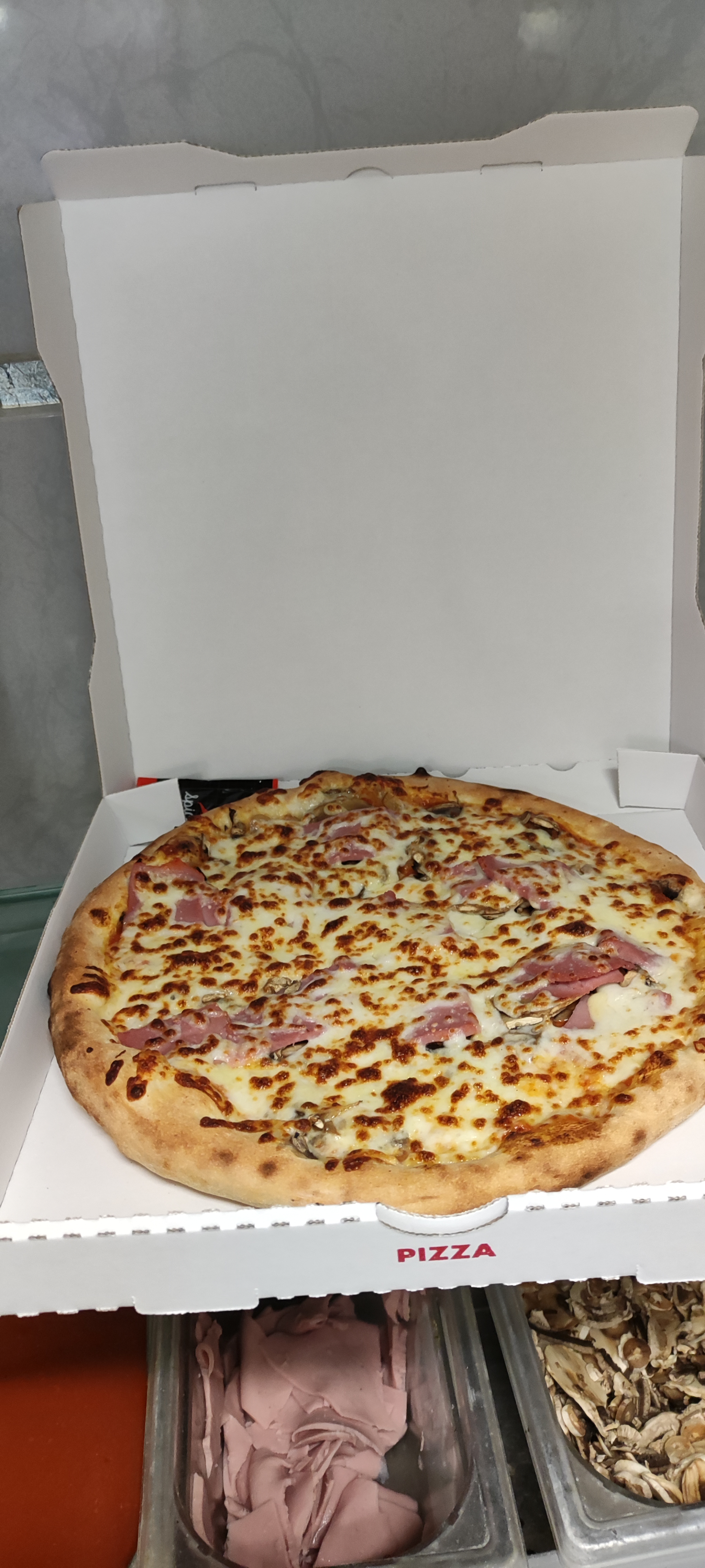 Super pizzeria, généreuse garniture, frais et de qualité.