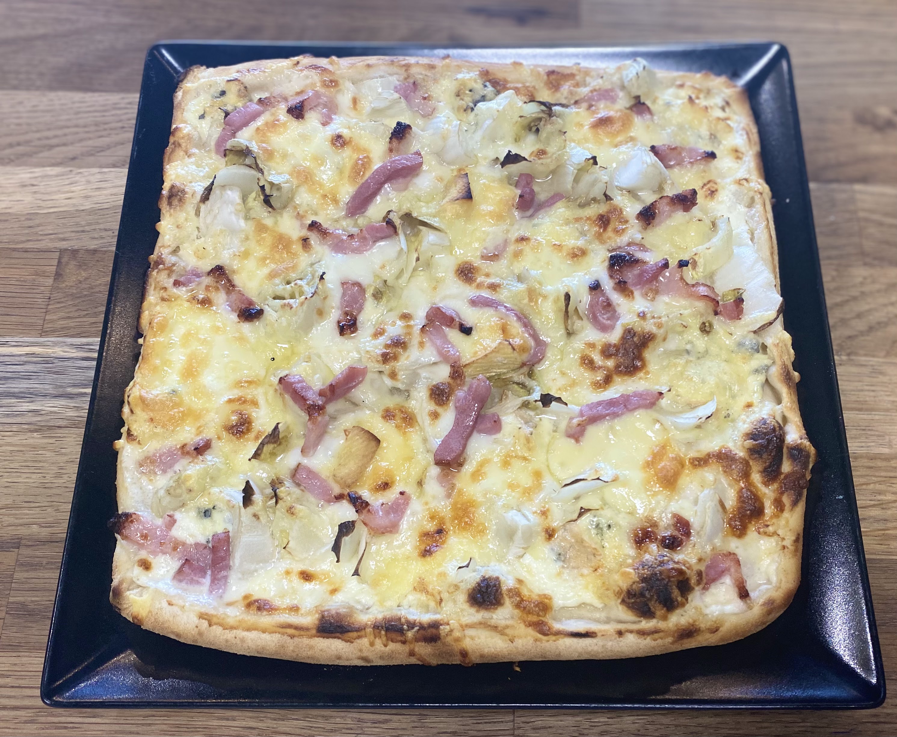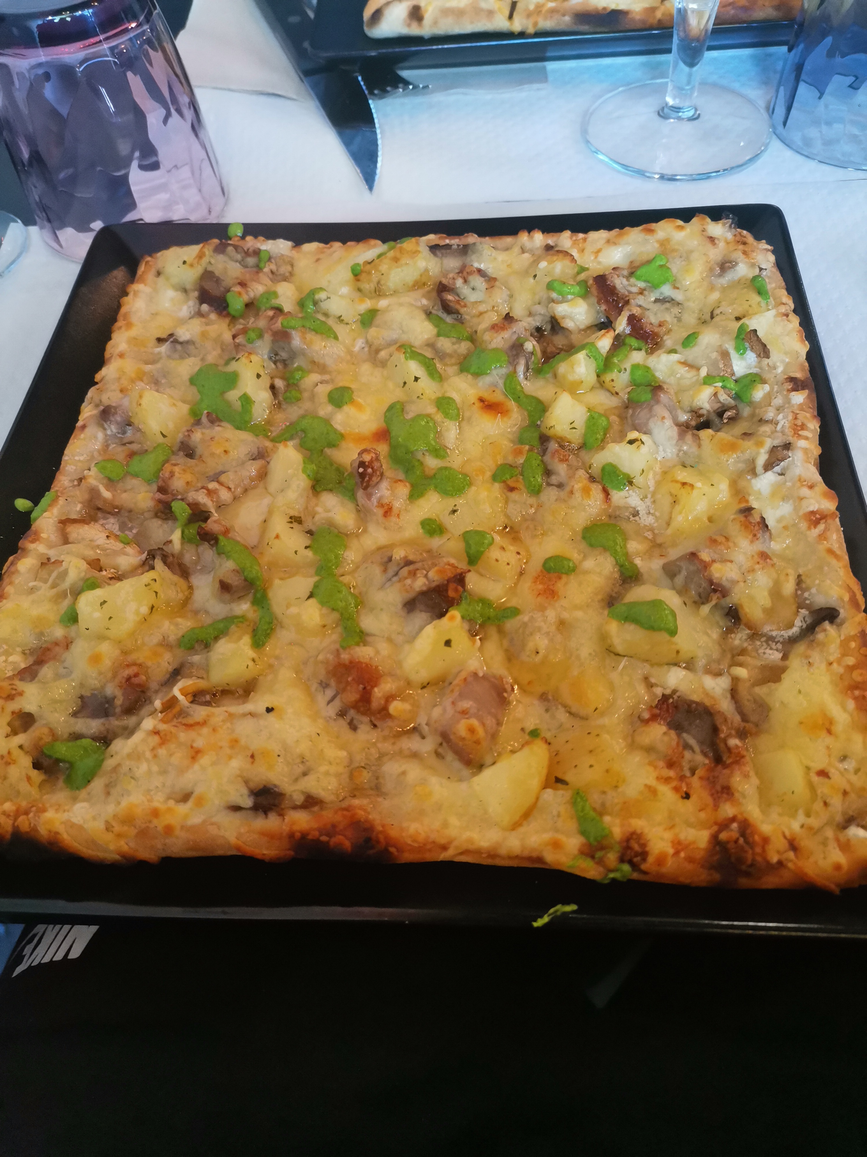 Très original une pizza carré ! Bien garni et très bon ! Personnel super simpa et bien accueilli , ça fait du bien ! Je recommande !