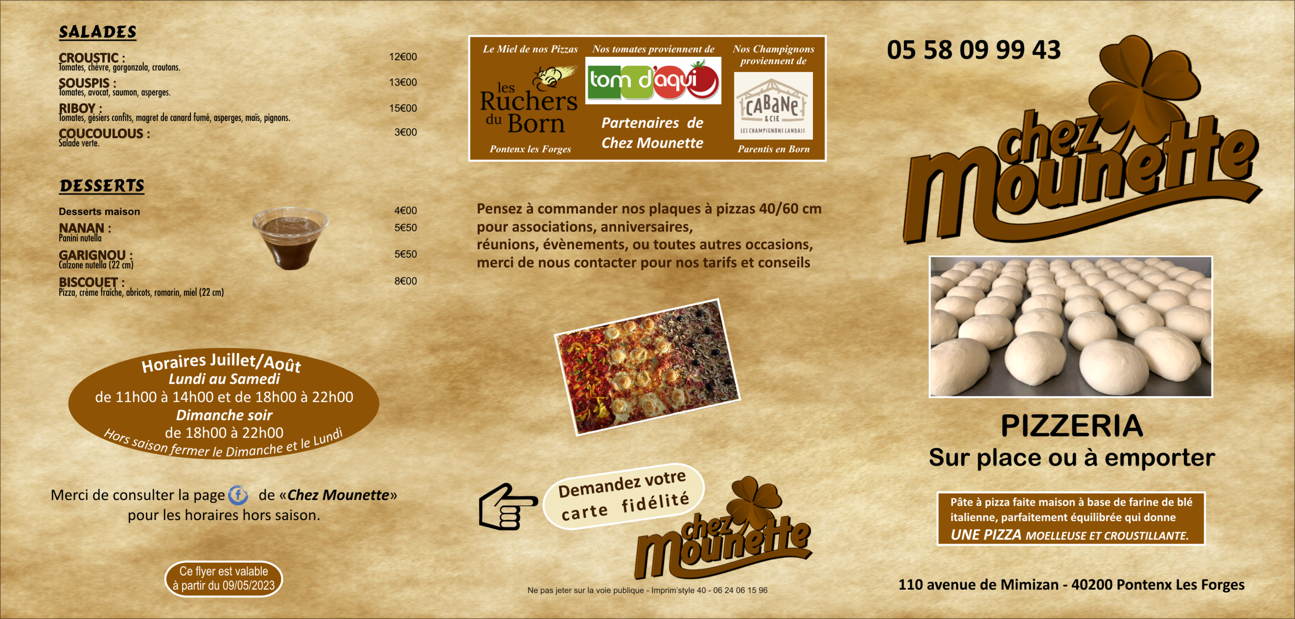 Chez Mounette résumé en 5 mots : pizza , juste prix ,accueil chaleureux Encore merci