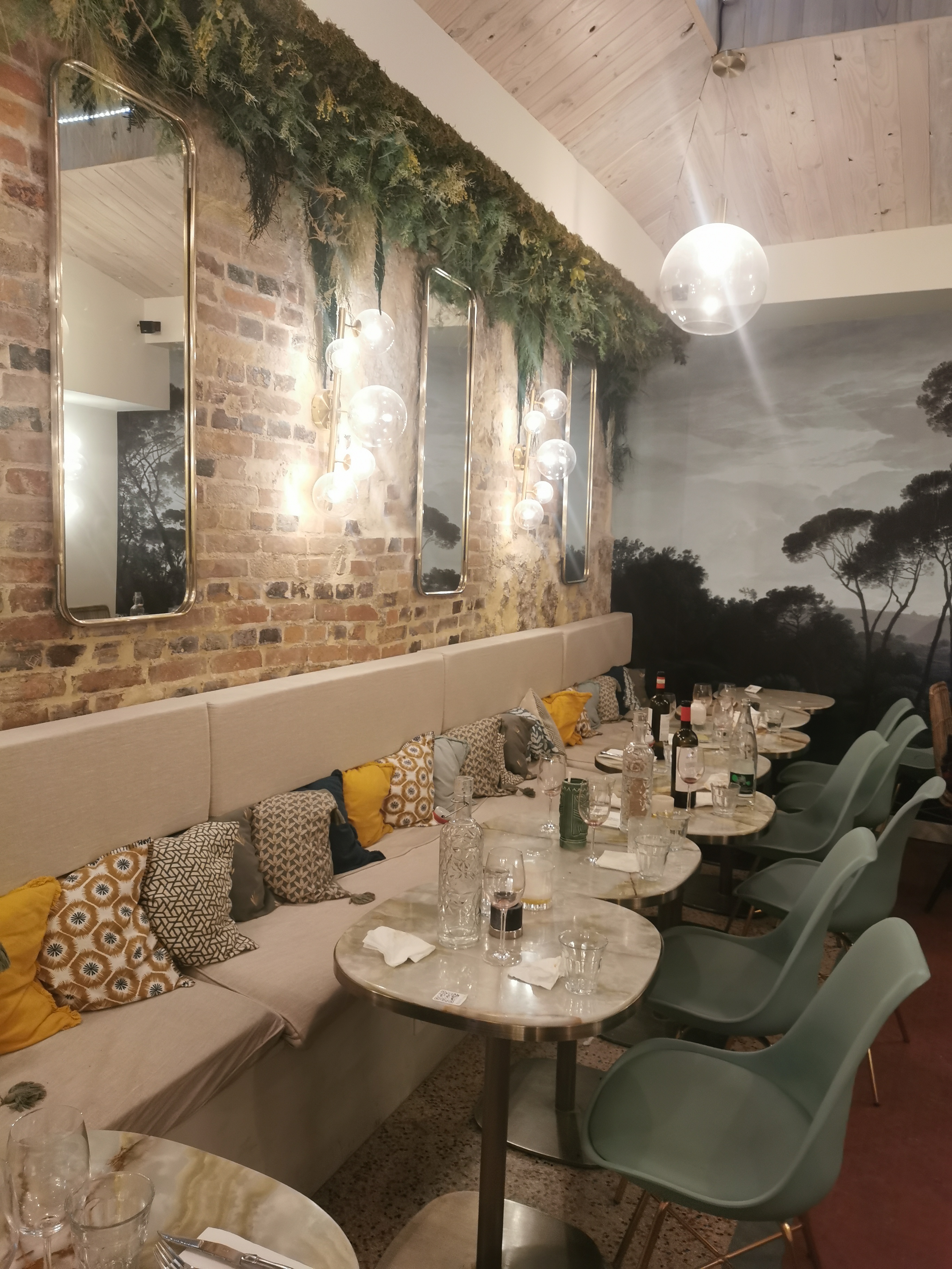 Excellente cuisine, service chaleureux, superbe déco Je n'avais jamais testé la Pinsa au pesto de pistache et c'était divin. La panacotta se mange sans faim, légère et peu sucrée idéale pour finir le repas. Je recommande les yeux fermés!