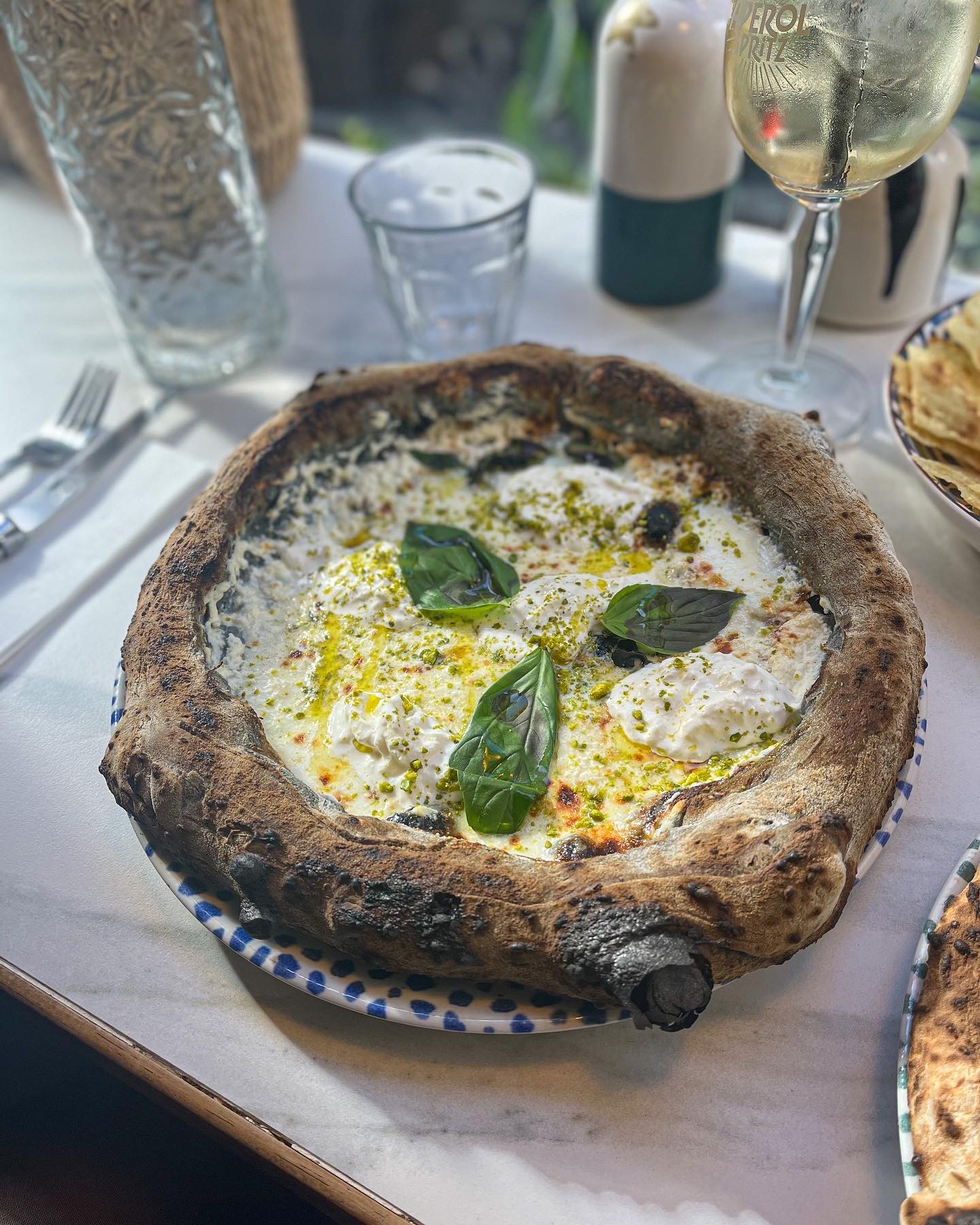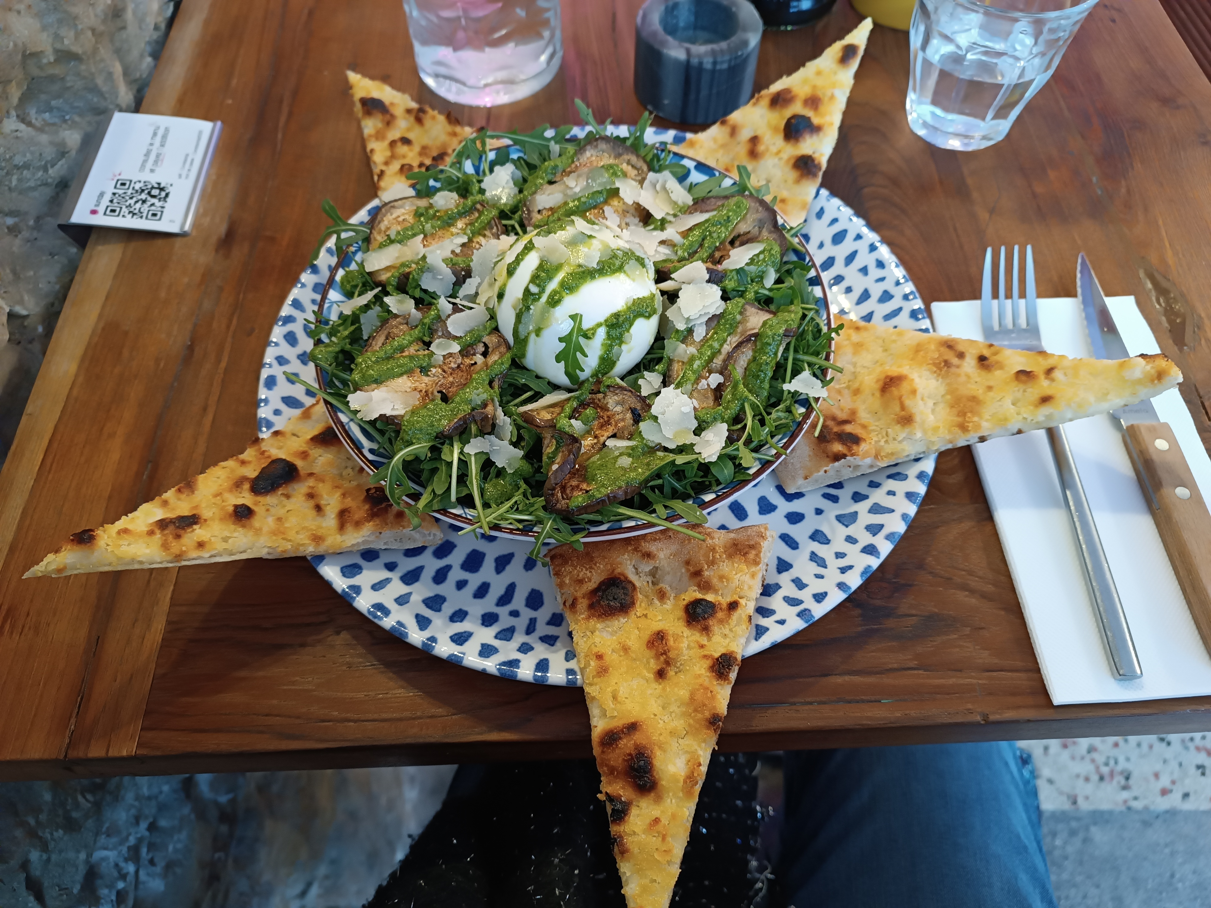 Pinsa pistache et salade fresca. Délicieux. Service très agréable