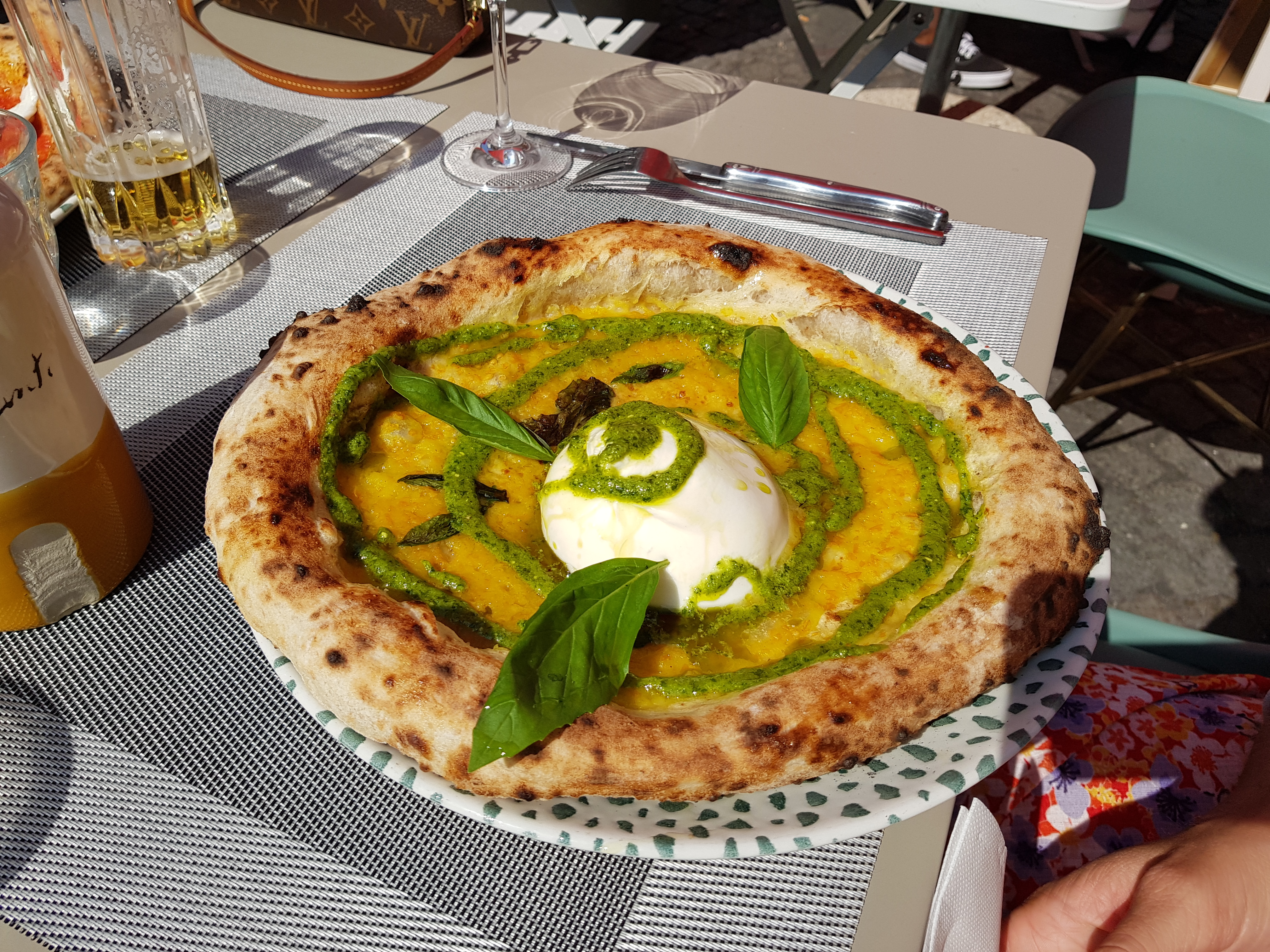 Très très bonne pizza (mortadelle / pesto de pistache / stracciatella -> une tuerie). Jolie petite terrasse ensoleillée 🥰