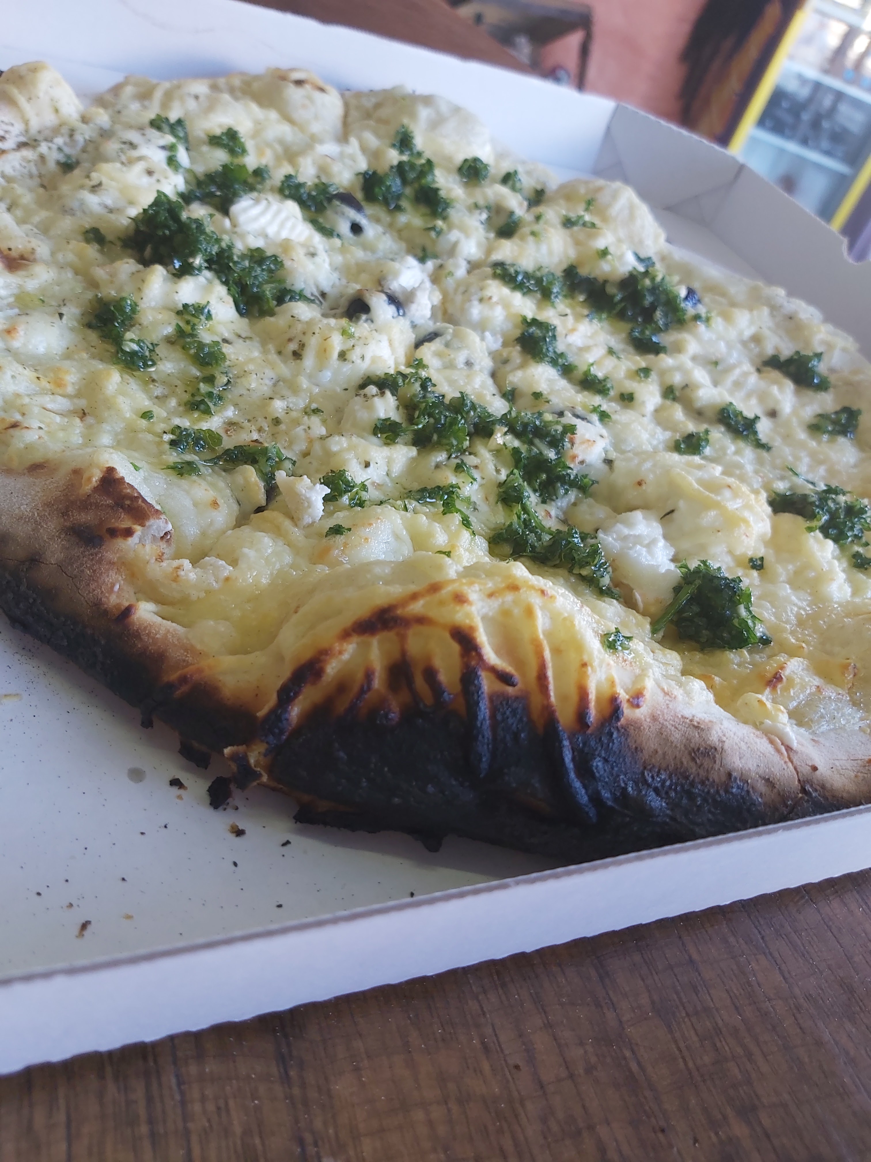 Pizza au feu de bois rien d'extraordinaire sauce acide et trop aïlée .prix excessif