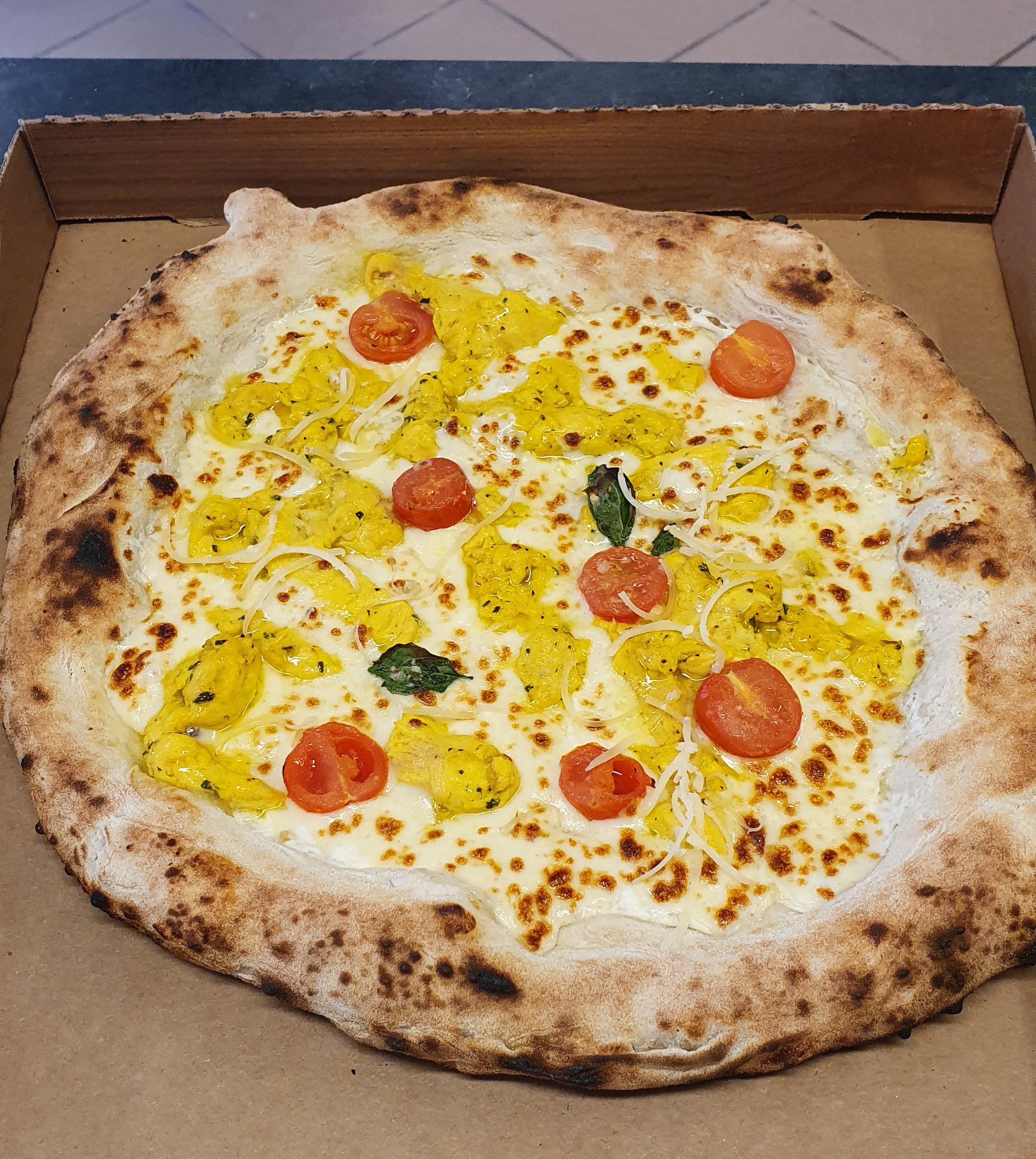 J’ai pris une pizza au boursin elle était excellente, la pâte tendre…. Un régal 😉