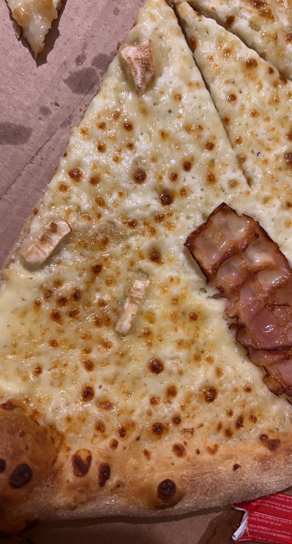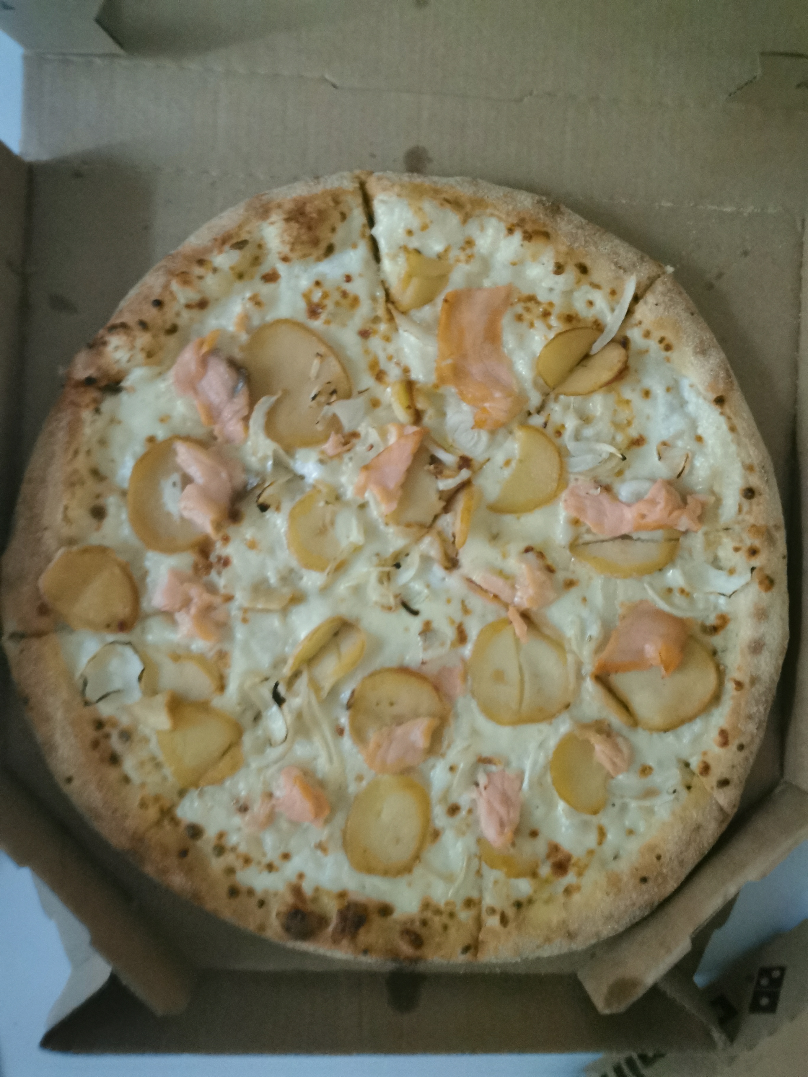 Nous ne mangeons pas très souvent à Dominos mais il y a franchement un changement de qualité. L’épaisseur de la pâte est inexistante, du carton limite. Le fromage de chèvre sur la pizza idem. Les pommes de terre mal cuite sur une autre. La prochaine fois nous réfléchirons à deux fois avant de commander.