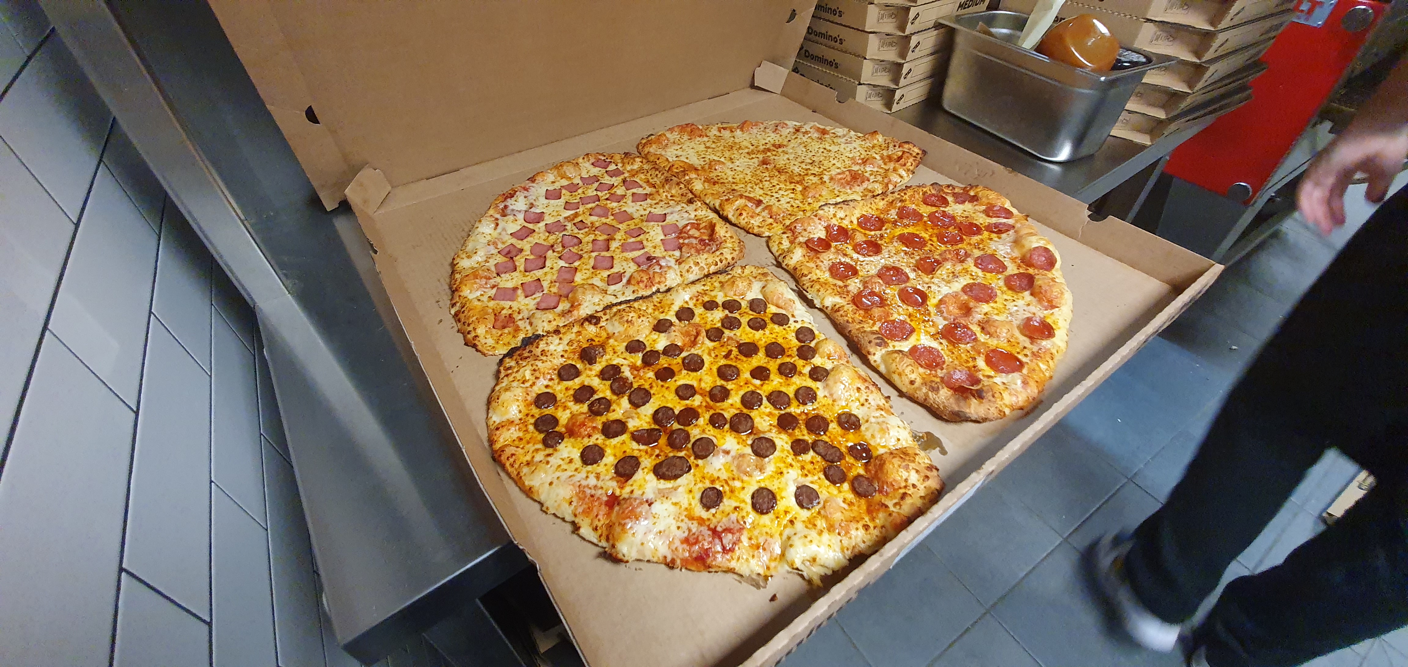 La pizza Domino tient sa marque, les 4 fromages sont toujours aussi délicieuses, les enfants l'ont mangée et leurs oreilles craquaient.