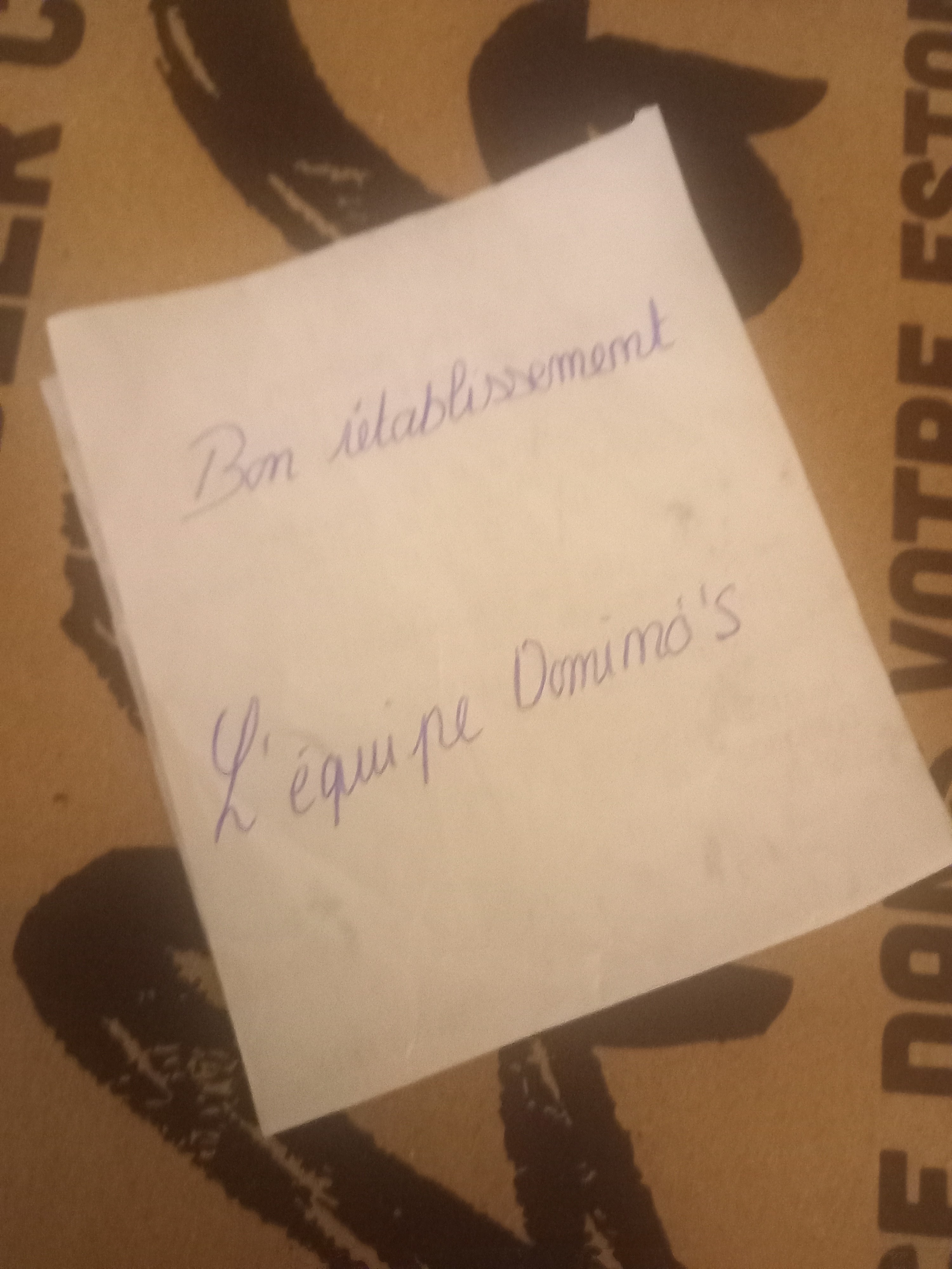 Etant adepte des dominos, je suis contente qu’il soit enfin ouvert .. mais hier en aillant commandé sur l’application ça ne mettait pas à jour la trace de l’avancement de la pizza .. mais également petit soucis un oubli de sauce sur la pizza urban kebab , un peu déçu sur le coup .. en espérant que la prochaine visite sera mieux 😉