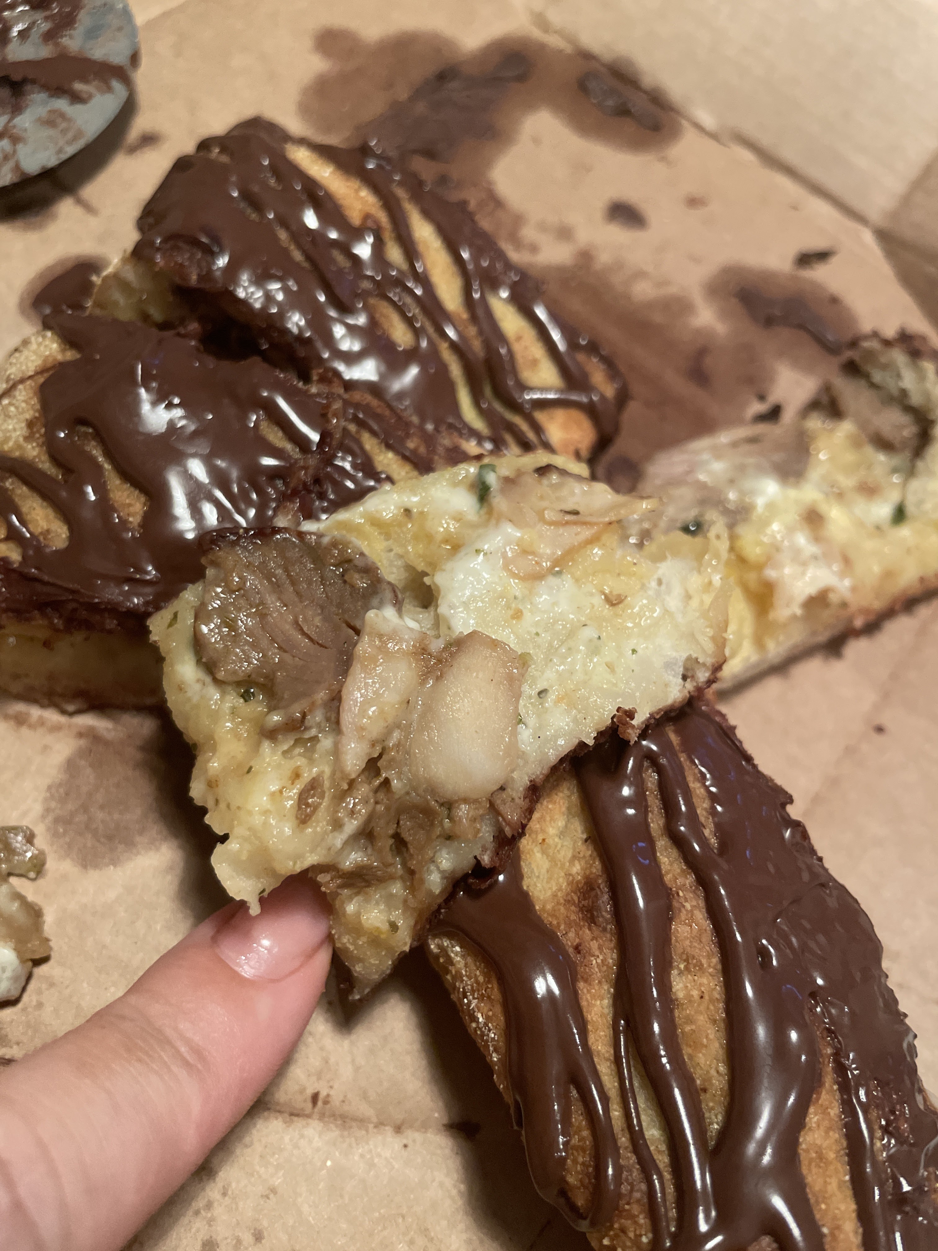 Livraison bien. La pizza était très bonne. Par contre très déçu des churros ils sont très durs et pas forcément très bons. Et une tonne de sucre glace sur le fondant au chocolat... Dommage...