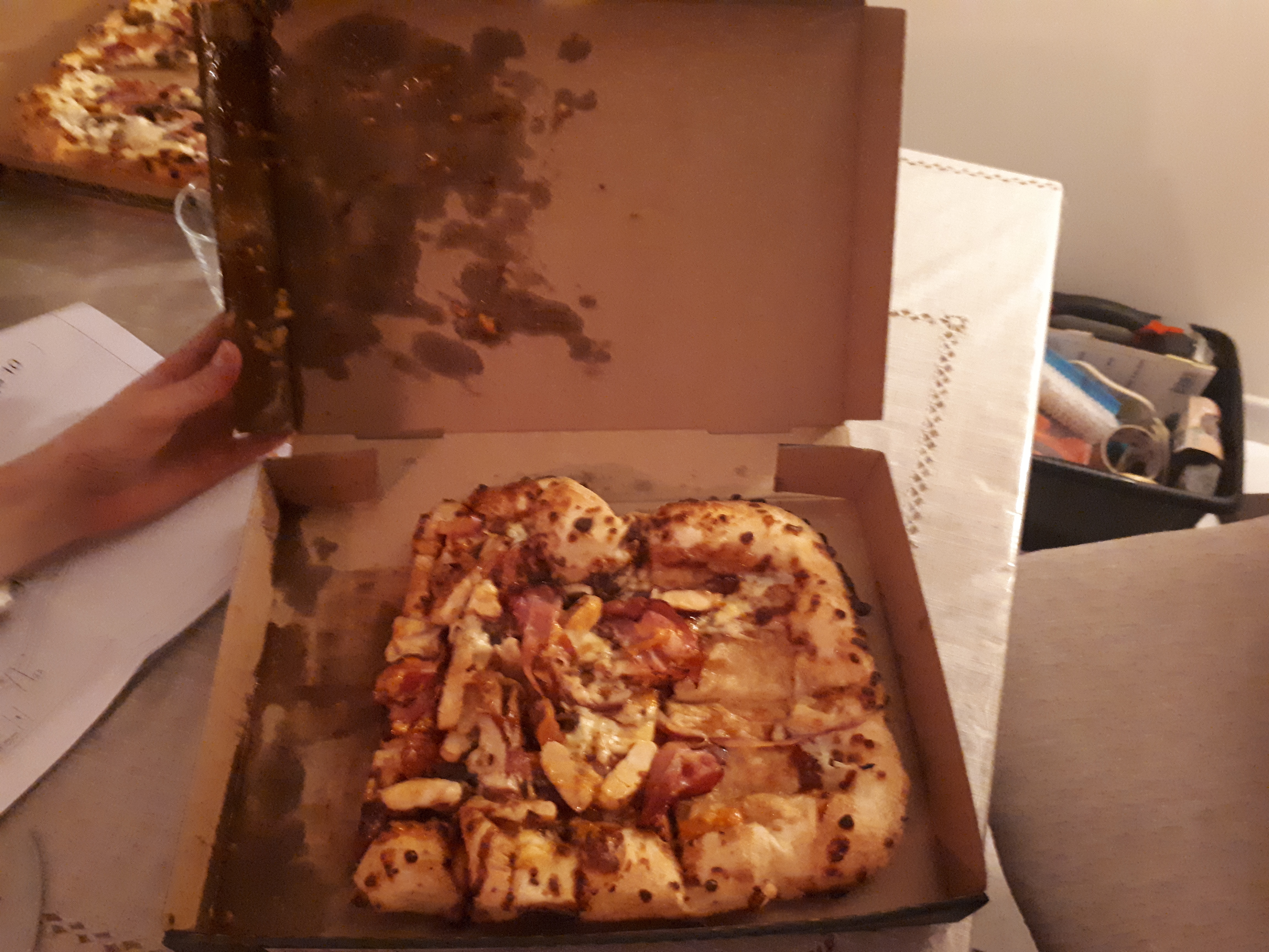 Pizzas livrées dans un état lamentable, écrasées, déchiquetés dont une avec un morceau coupé nettement en son centre. Le magasin a refusé de réparer le préjudice.