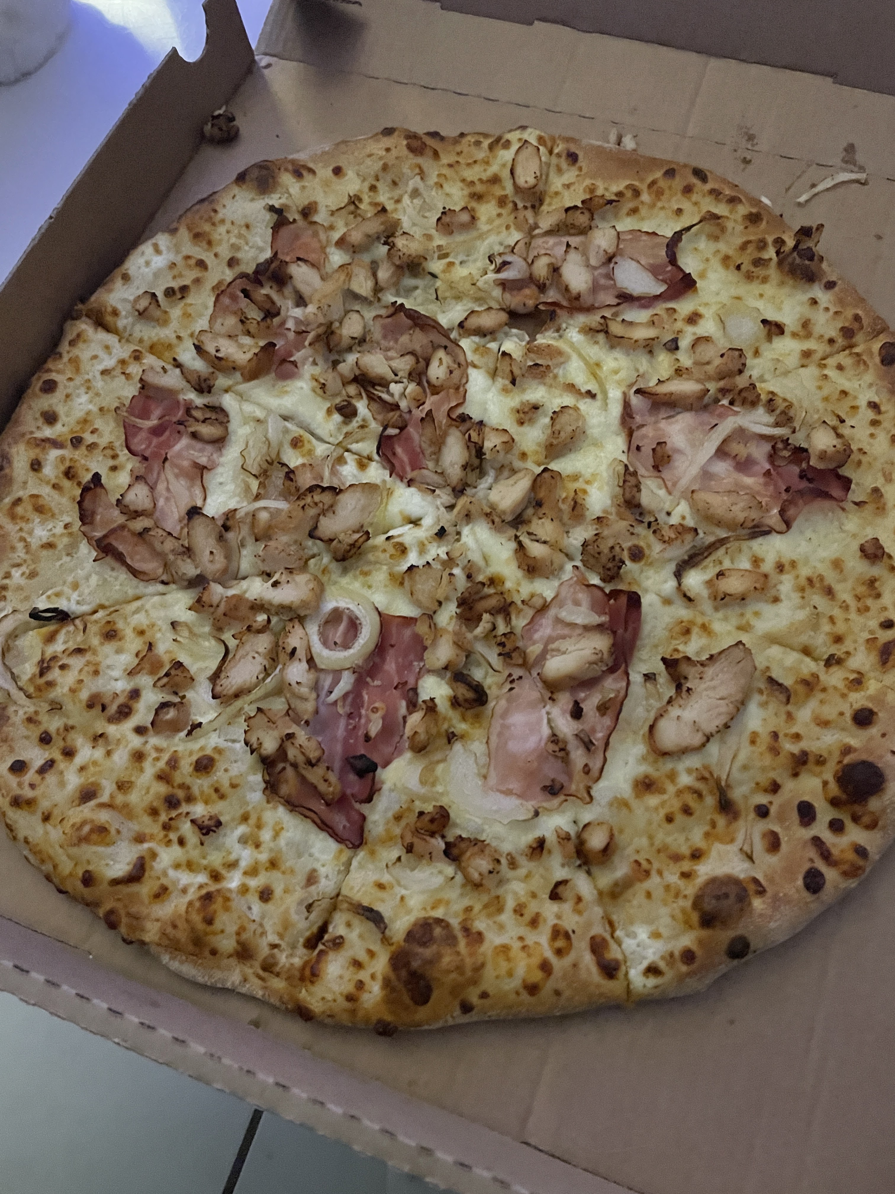 Le temps d'attente était un peu long (1h), mais compréhensible pour un samedi soir La pizza était plutôt bonne, surtout la pâte, mais manquait clairement de sauce barbecue. Dommage ! ☹️