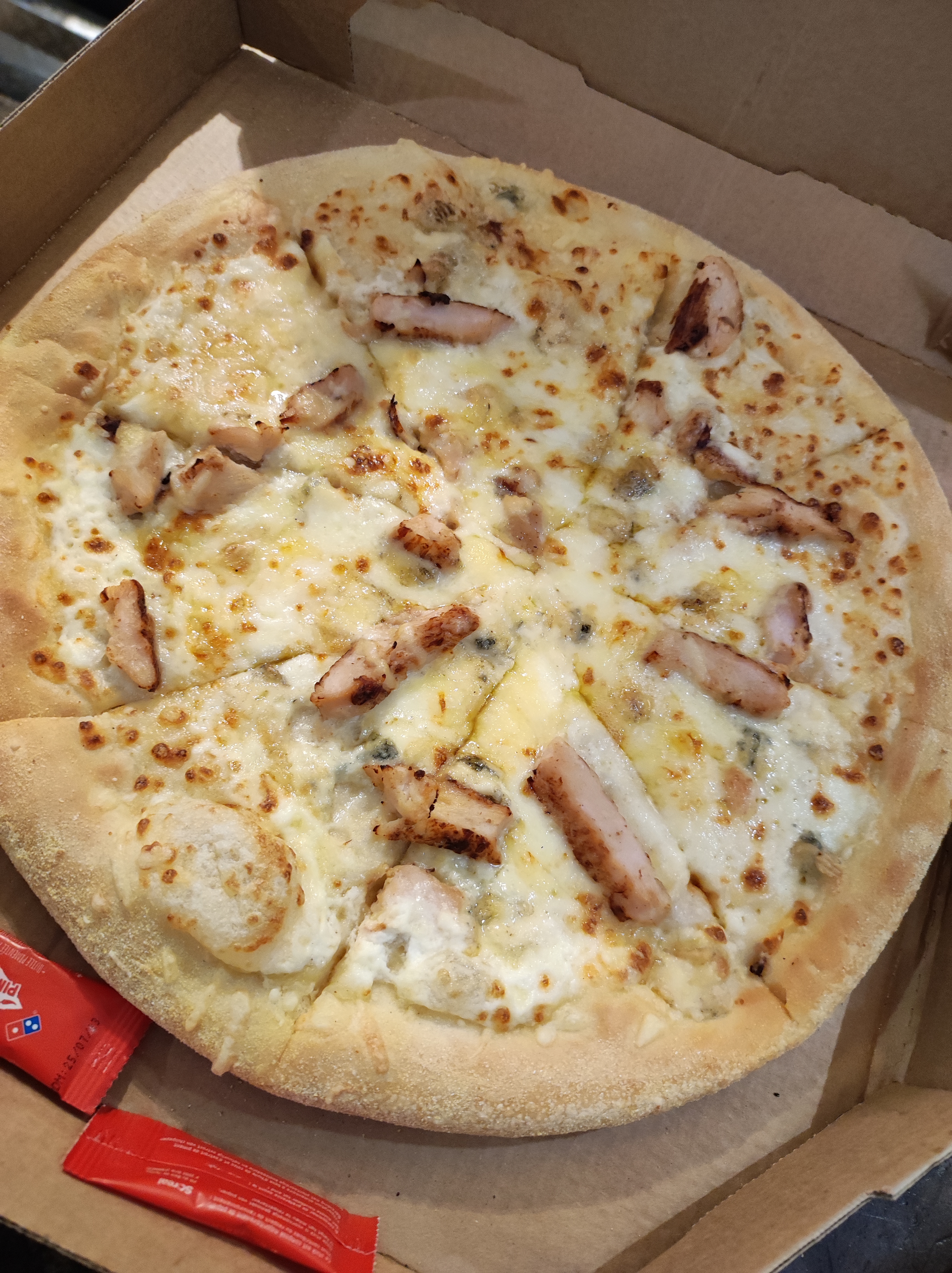 Largement meilleur que le Pizza Hut de la même ville. Je ne fais pas de généralité mais je compare juste les deux enseignes de la ville. Pas de problème de cuisson pour le Dominos contrairement au Pizza Hut.