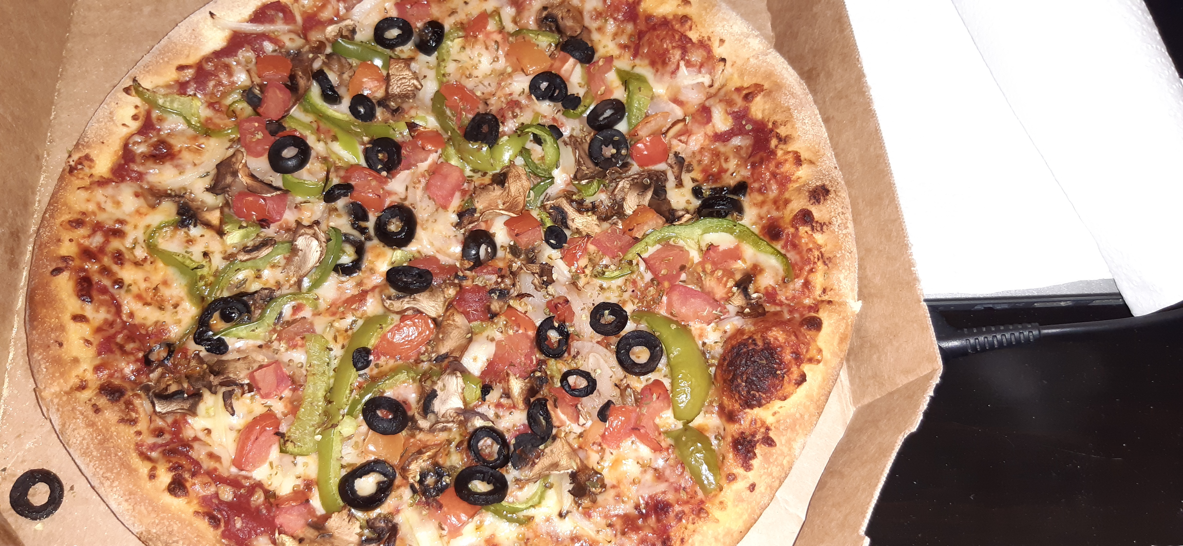 Nous avons mangé ici 2 nuits de suite. Nous sommes rentrés très tard et c'était le seul endroit ouvert. Leur pizza à emporter était délicieuse. Tout comme en Amérique. Je recommande vivement cet endroit.