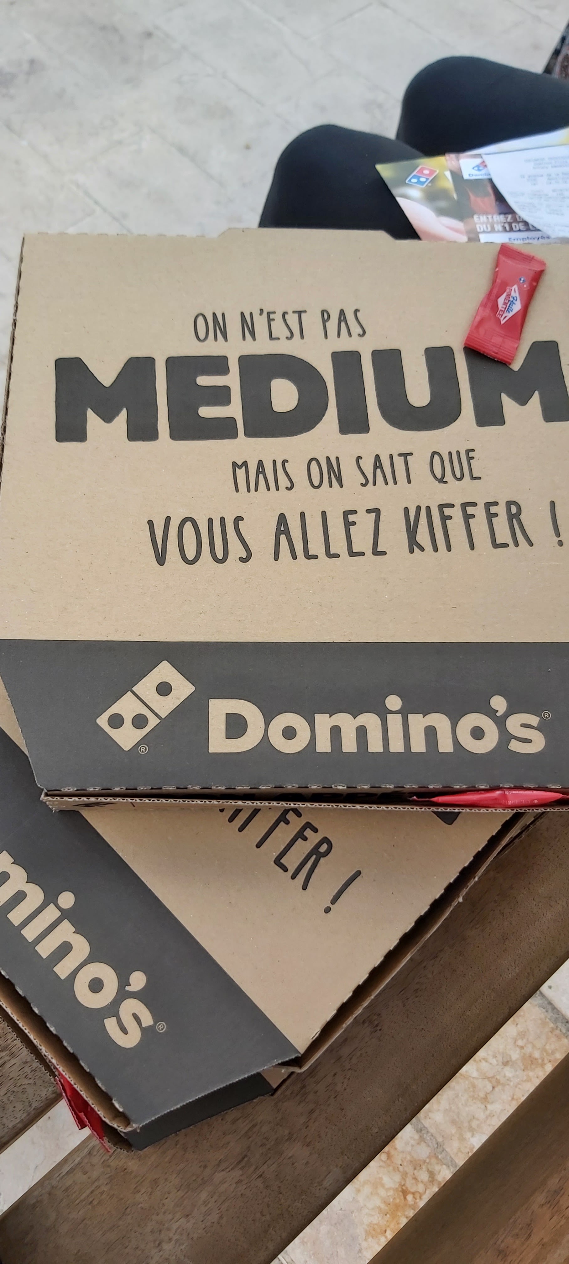 Franchement de base j'aime bien dominos mais 2 fois vous faite le coup de prendre des commandes et 2 fois elle n'arrive pas, là on vient de me sortir comme excuse a 23h40 sa fait 2h que j'attend ma commande ! On m'a sortit comme excuse mon livreur a u un accident sa avait l'air vachement sérieux mdr ! Dominos arrêter de prendre des commandes quand vous êtes pas sûre de la livré ! Cordialement