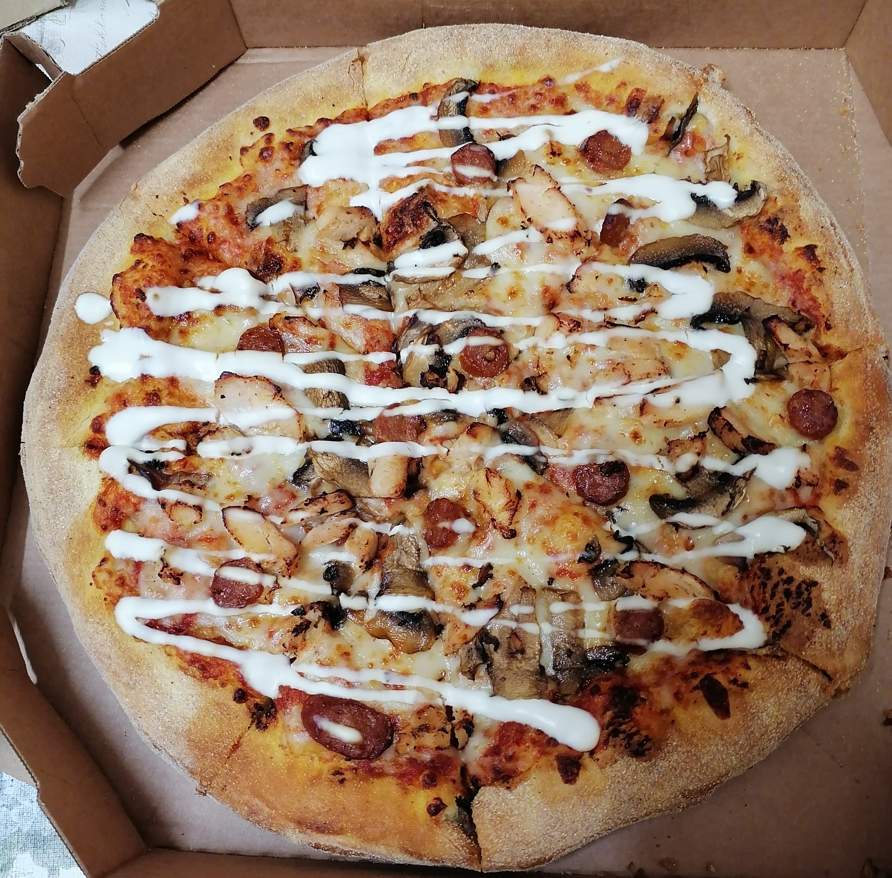 Pizza bonne mais les livreurs just eat à côté de la plaque et très long vaut mieux les récupérer sur place ou appeler dominos pizza ils sont plus rapide et efficace