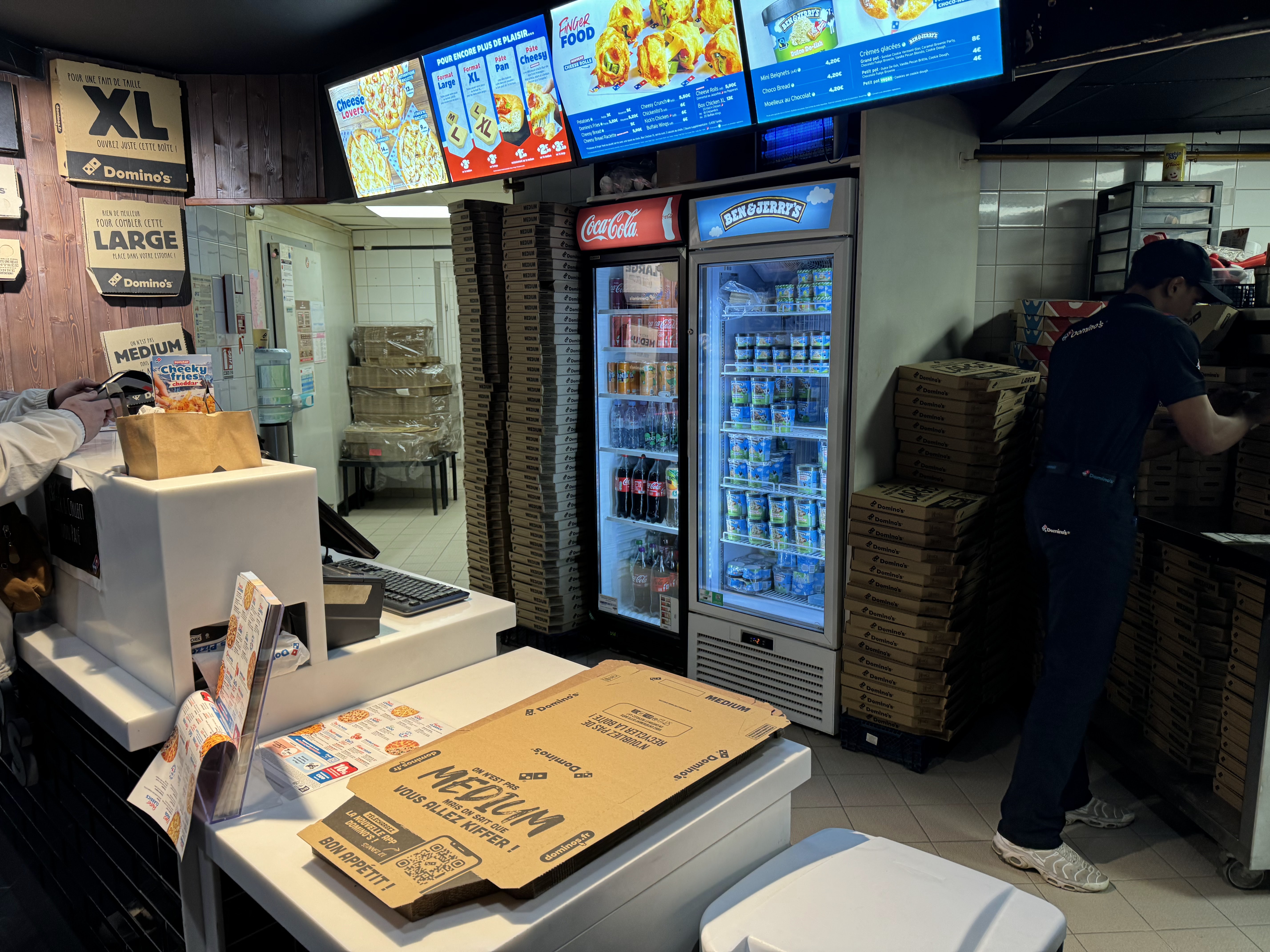 L’équipe est gentille et accueillante ; le problème, c’est Domino’s : les pizzas et nuggets donnent l’impression de manger du carton, c’est juste déprimant. Alors oui, il y a tout le temps des offres, mais autant se faire un bon jambon-beurre.