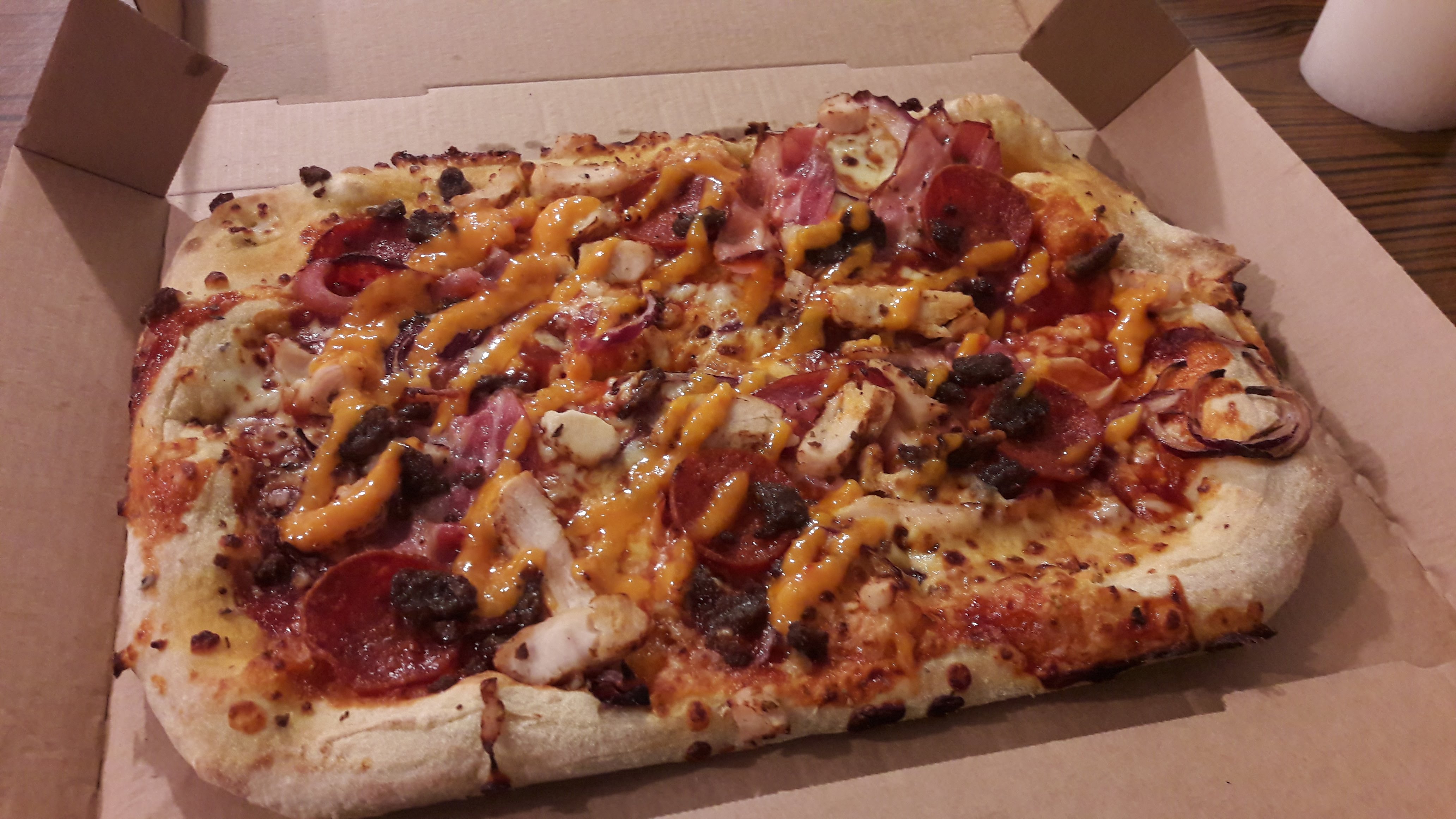 Les pizzas au bout de 40 minutes au lieu de 15-20 min. Au global 3 pizzas plutôt moyennes. Le domino's d'asnières/bois colombes est nettement meilleur. Le 3 est lié aux conditions de travail atroces dans lesquelles ces garçons exercent. On peut tout leur pardonner. La pizza Chèvre-Miel est à retirer de la carte.
