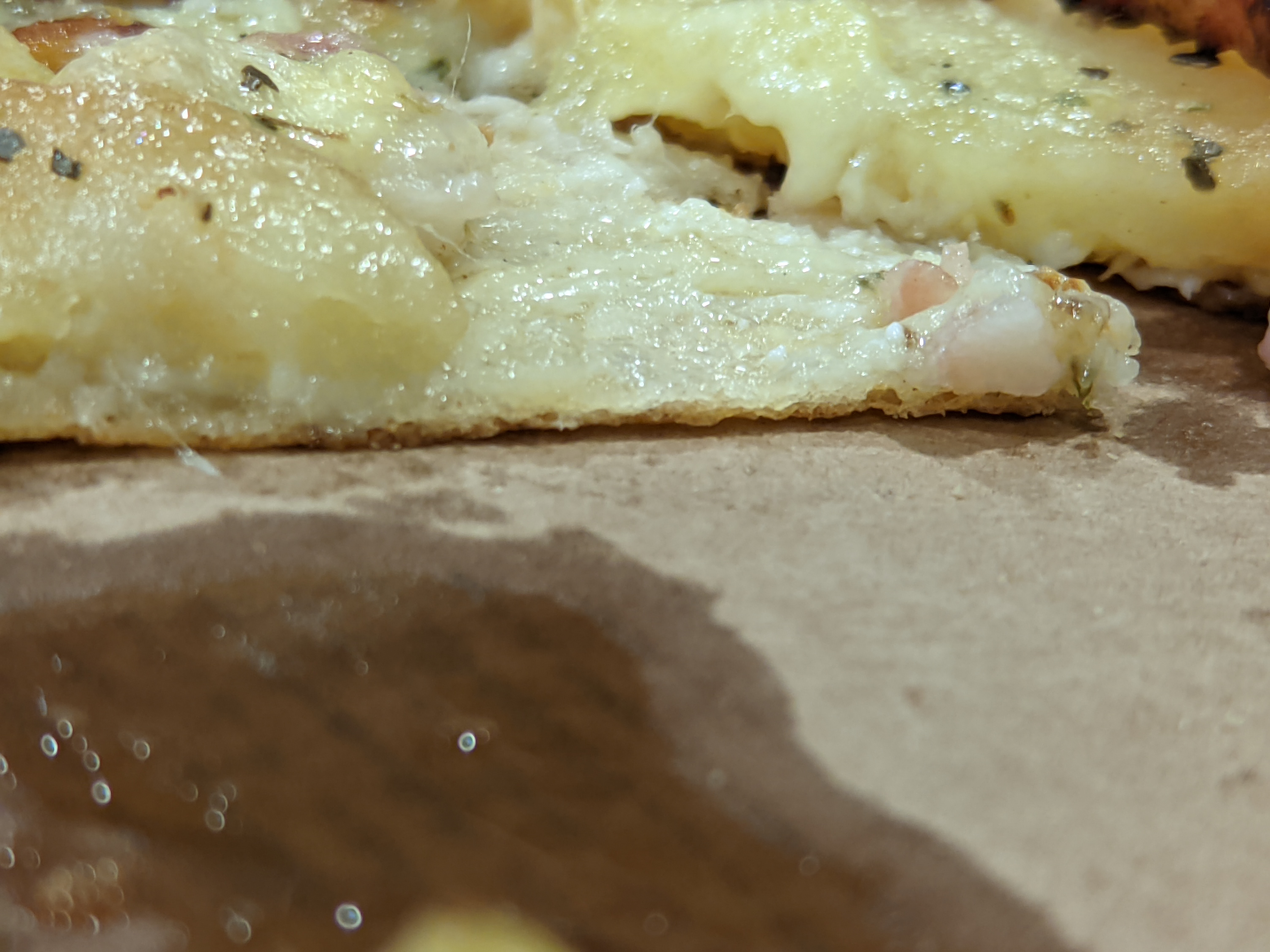 Je n'ai jamais vu une pâte aussi fine en sachant que j'ai pris la pâte mozza crust medium... Une honte pour une aussi grande enseigne, les quantités sont ULTRA minimisées pour un maximum d'économie et ça se voit à la tête de la pizza ...( voir photo ) les pizzas sont très sèches, la qualité des ingrédients est à revoir. Le goût de la pizza est nul car il n'y à pas assez de quantités