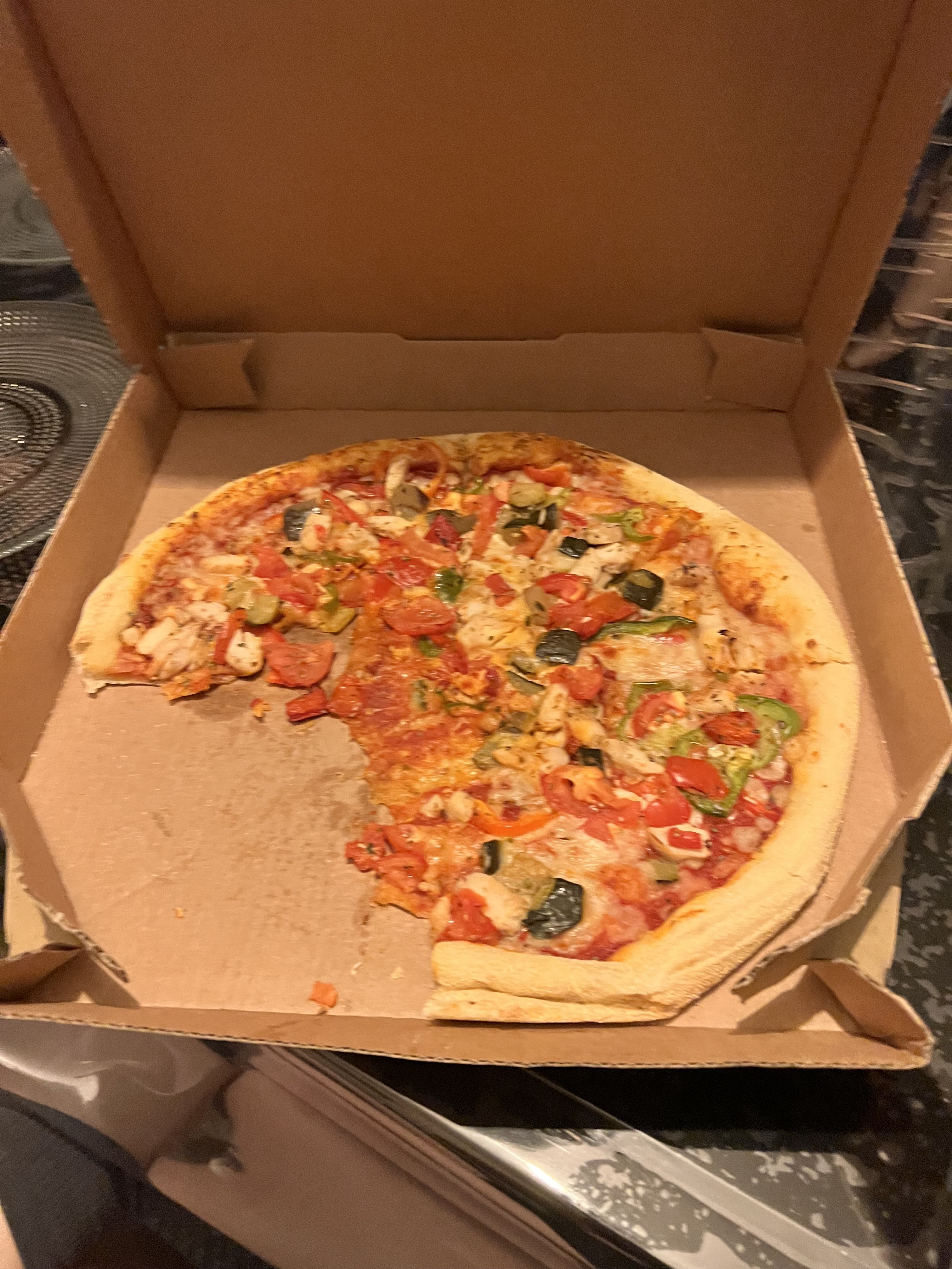 Pris une pizza xl indien donc 40cm je cherche encore le poulet? il doivent encore courir pour attrapé le poulet je suppose .
