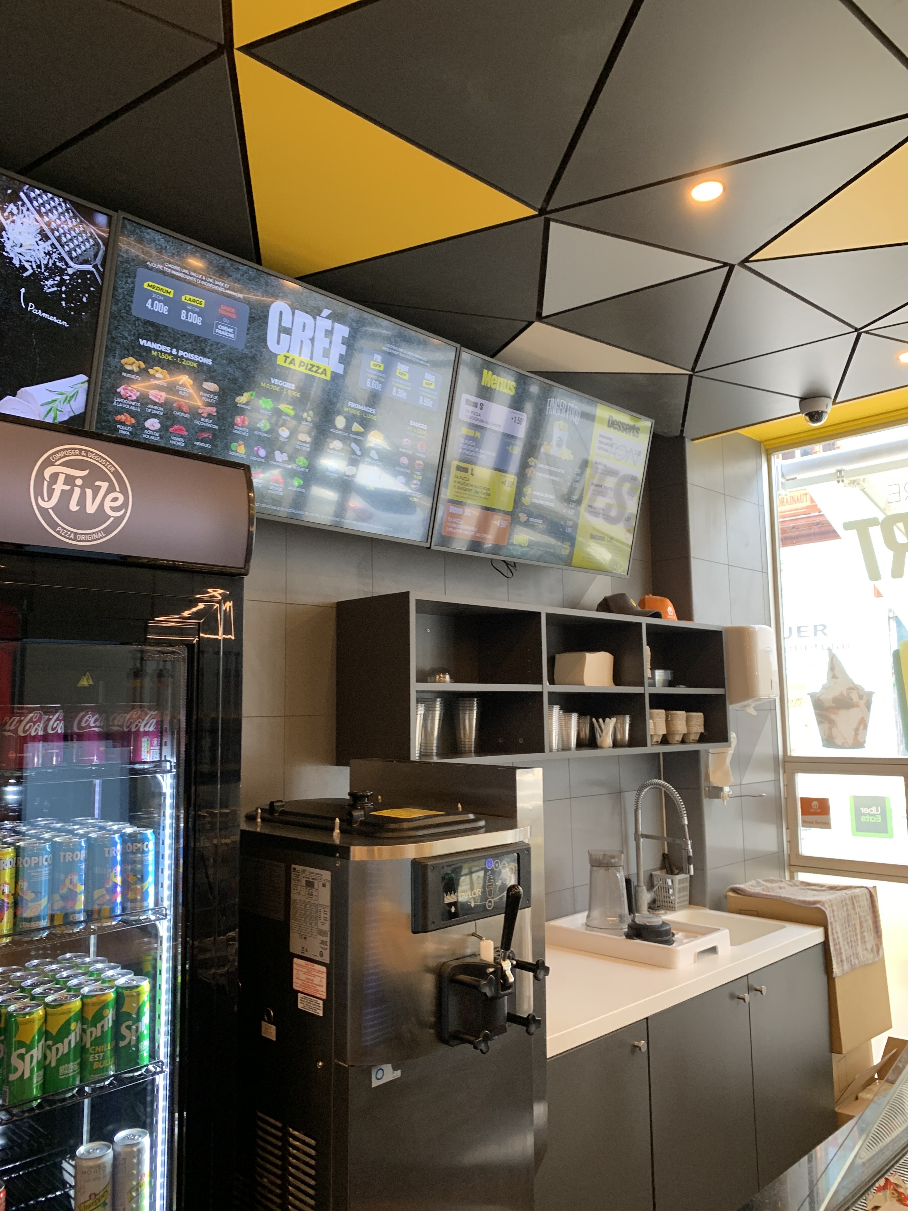 1ere expérience au Five! On a manger une pizza, rapidement. C est efficace,pas besoin de papilles gustatives aiguisé mais c est correct.