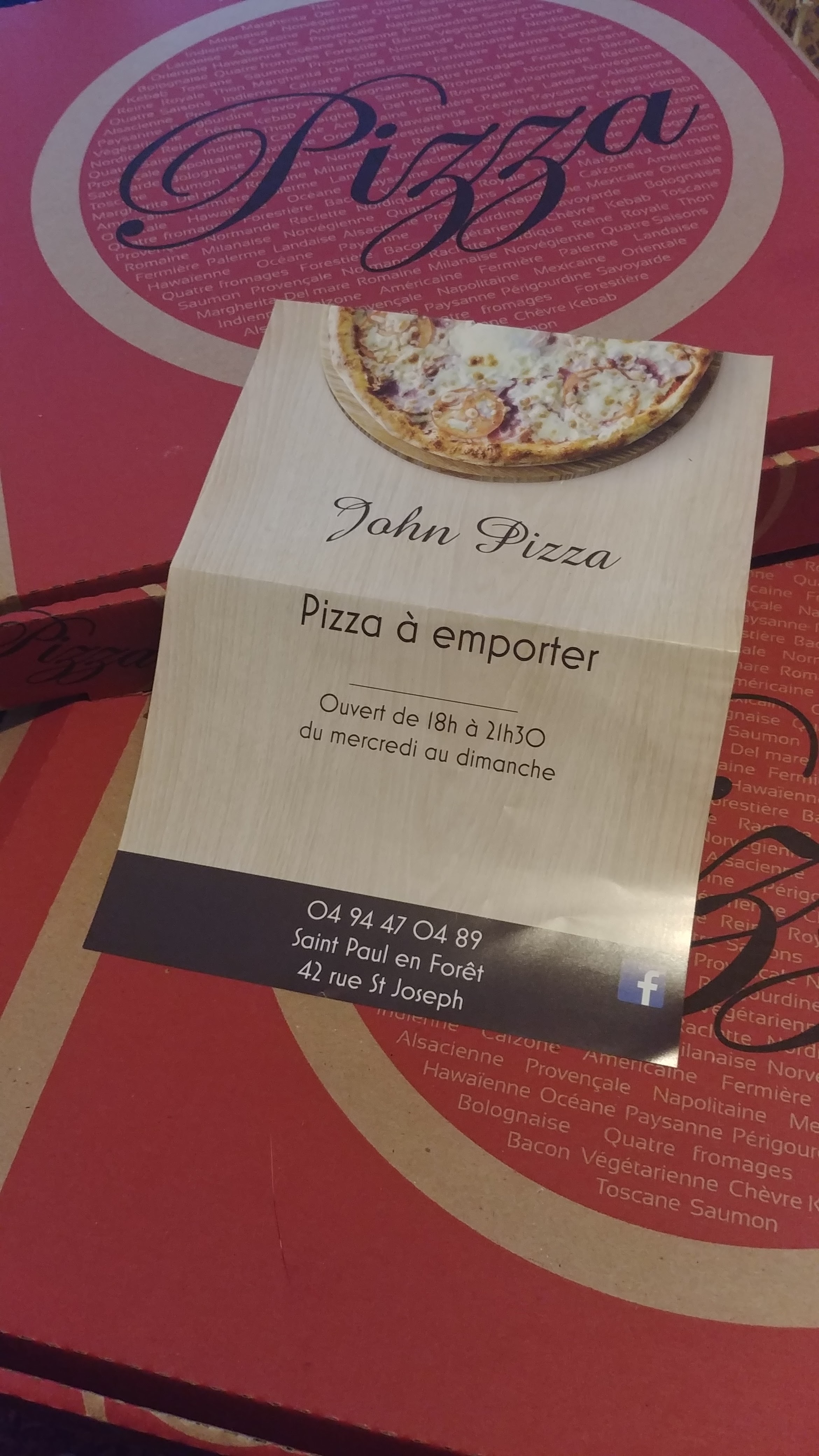 Voici toutes les informations sur le Pizzeria John Pizza qui ce trouve au 42 Rue de Saint-Joseph, 83440 Saint-Paul-en-Forêt (83). Sur cette fiche vous trouverez les photos, l'adresse, les horaires d'ouverture, le numero de téléphone et les avis clients.Vous pouvez églement rédiger un avis si vous le souhaitez en bas de page.
