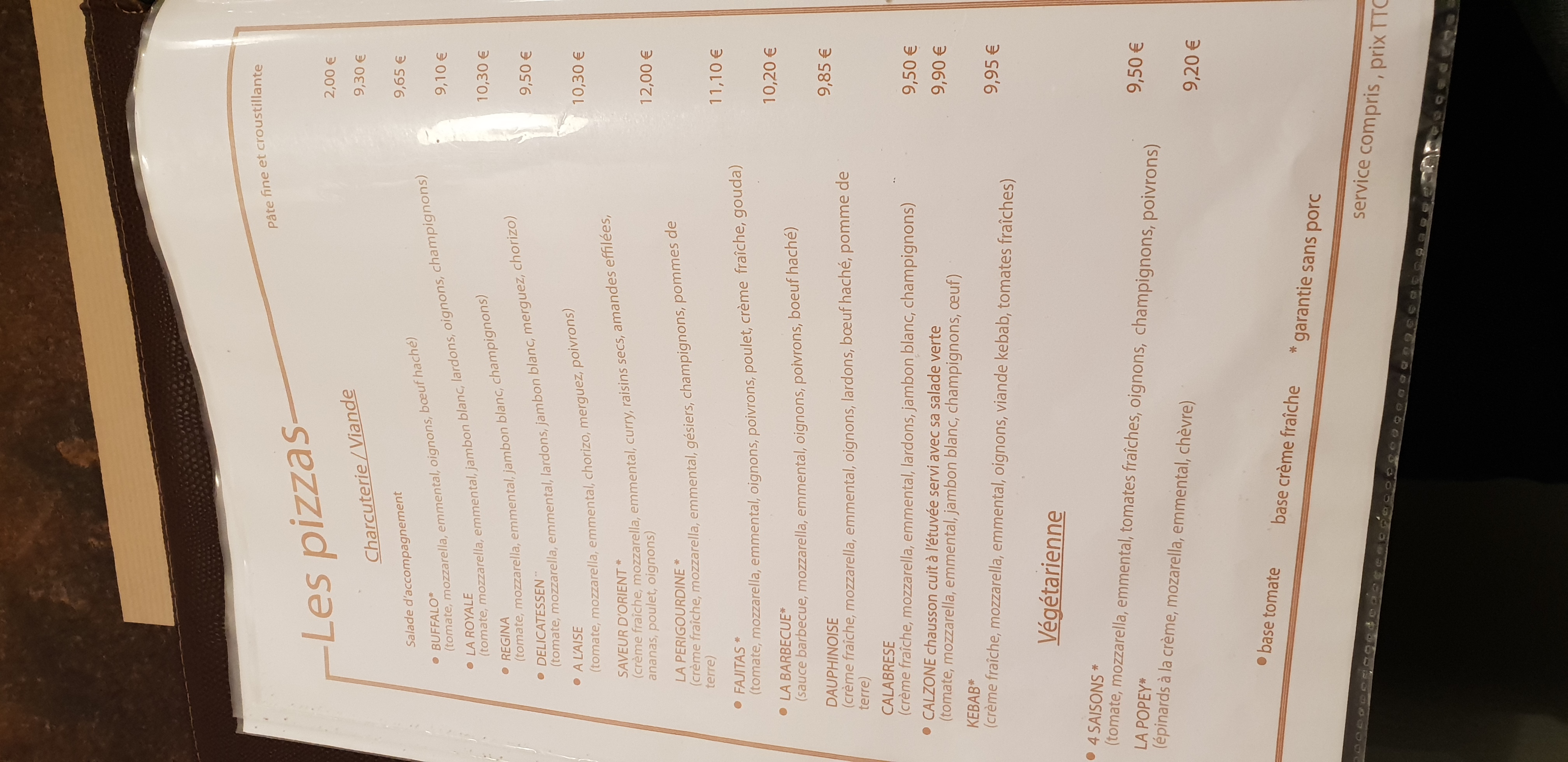 Globalement bon, l’ambiance est le service impeccable, les pizza sont bonne et les crêpes me semble chère mais compensée par les multiples choix