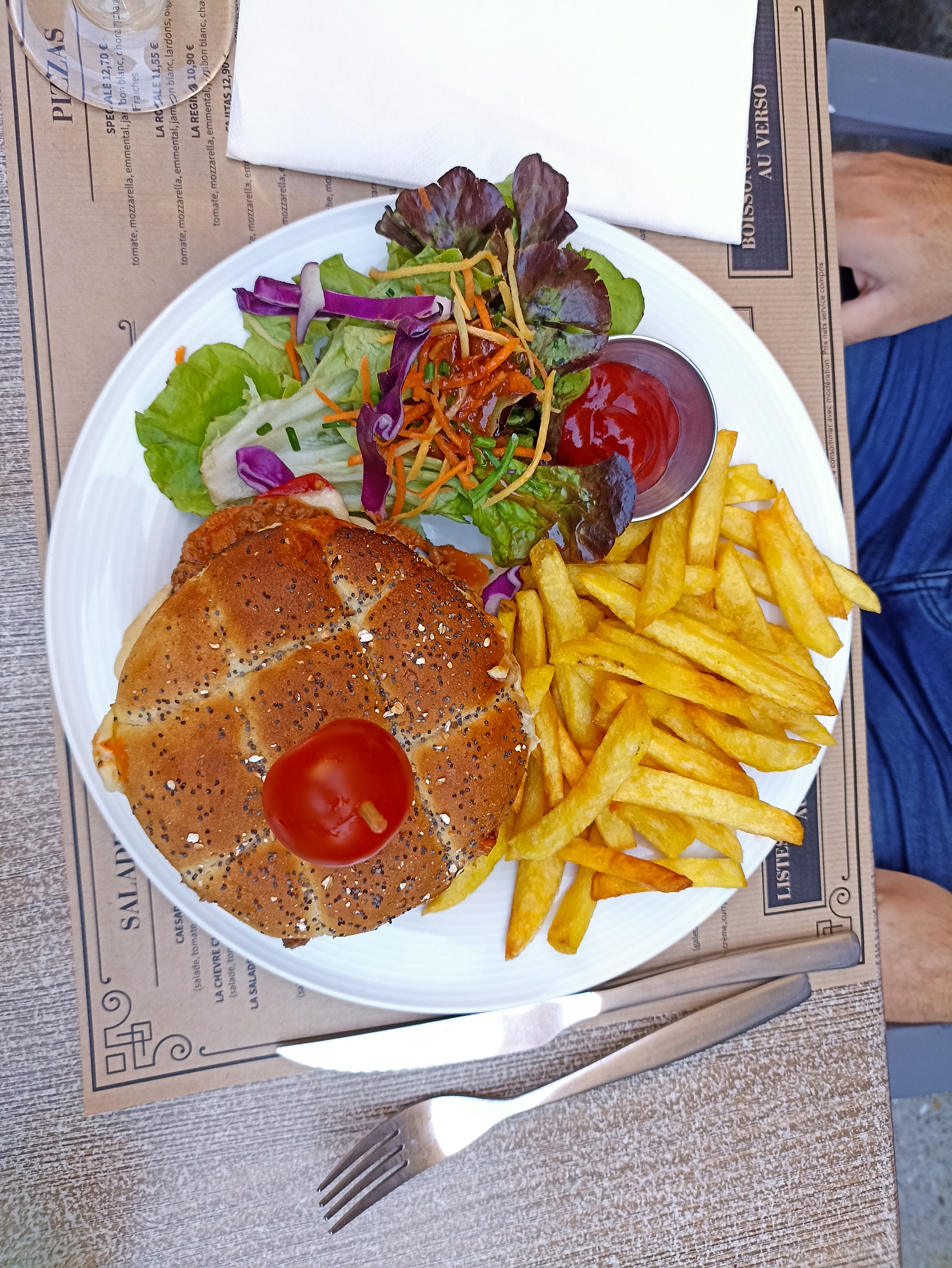 Hyper bien servi copieux et très bon ,rapport qualité prix, imbattable accueil chaleureux et déco sympathique Et en plus climatisé idéal avec les fortes chaleurs du moment Recommandé vivement