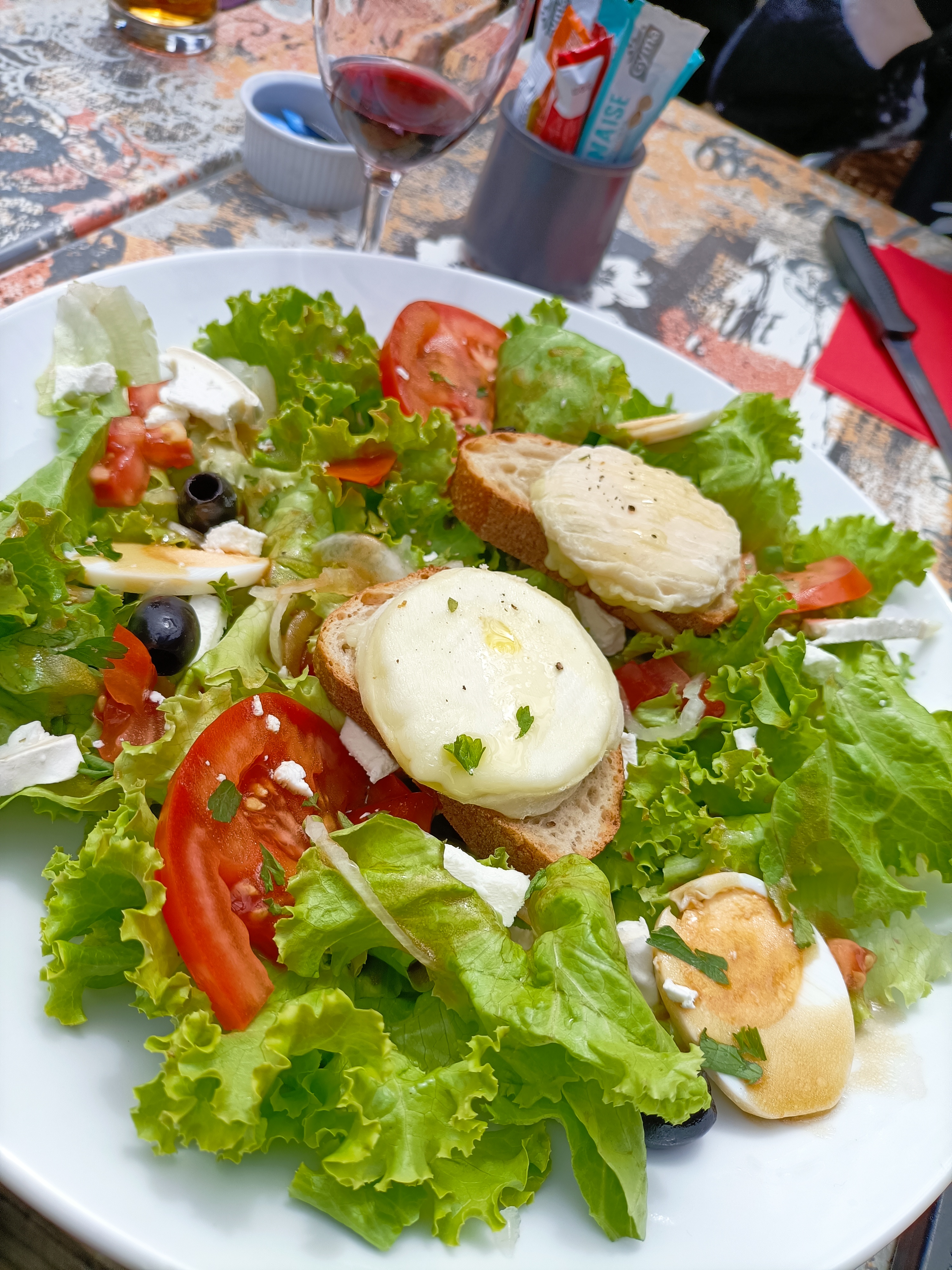 Salade au chèvre chaud besoin de s'améliorer . trop de salade avec pratiquement pas de vinaigrette et les pains à peine grillé et le fromage dessus je le cherche encore 😏