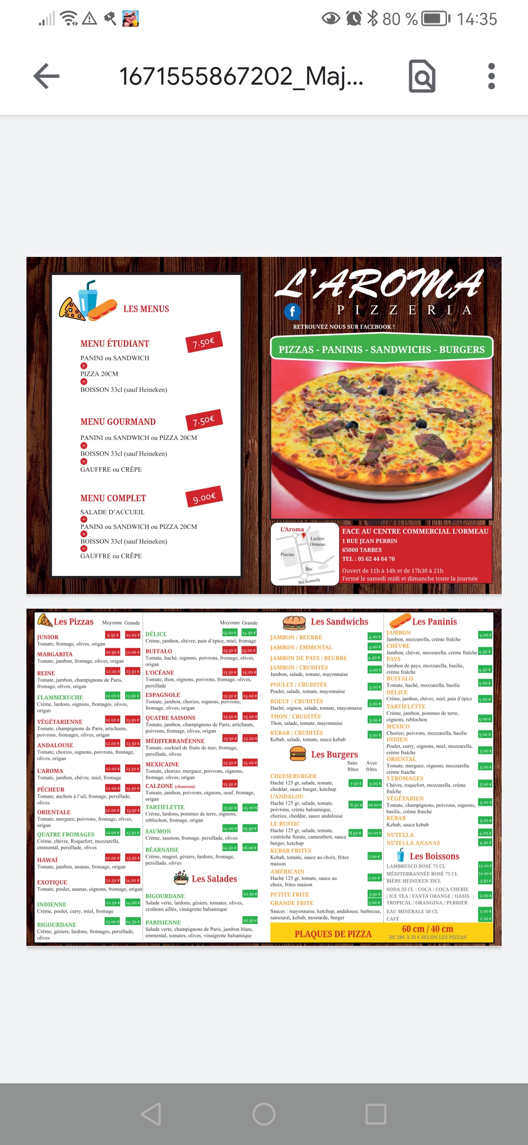 J'ai adoré les pizzas de l'aroma, un véritable délice. En plus, les gérants sont très sympatiques. L'endroit est propre, les produits sont frais. Un bon repas dans un cadre très agréable, je ne peux que vous recommander d'aller goûter leur cuisine ! Je reviendrai avec grand plaisir 😍