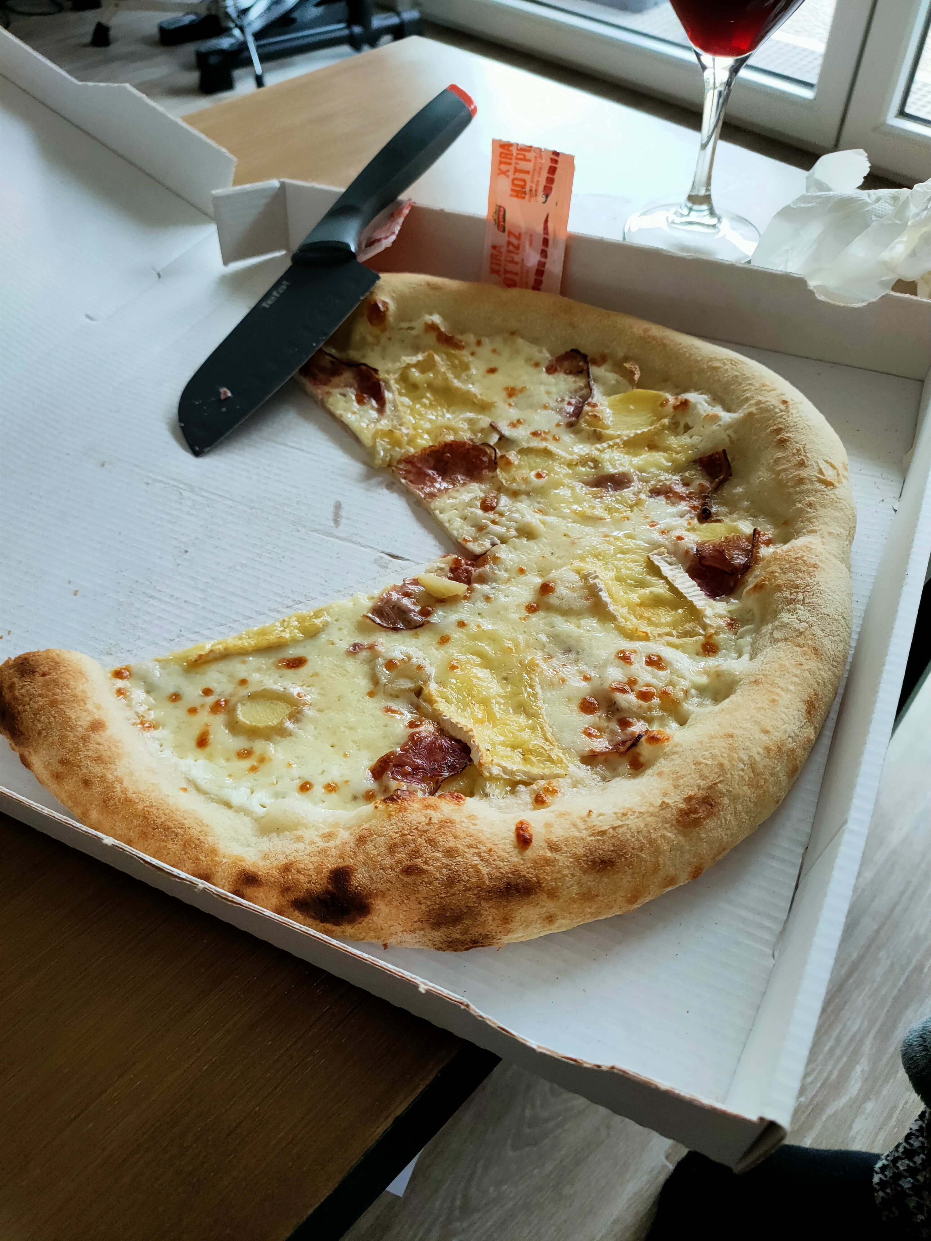Nous nous sommes fait livrer la pizza à la truffe à la maison et nous sommes complètement époustouflés par sa délicieuse! Sans hésitation nous commanderons à nouveau 😋