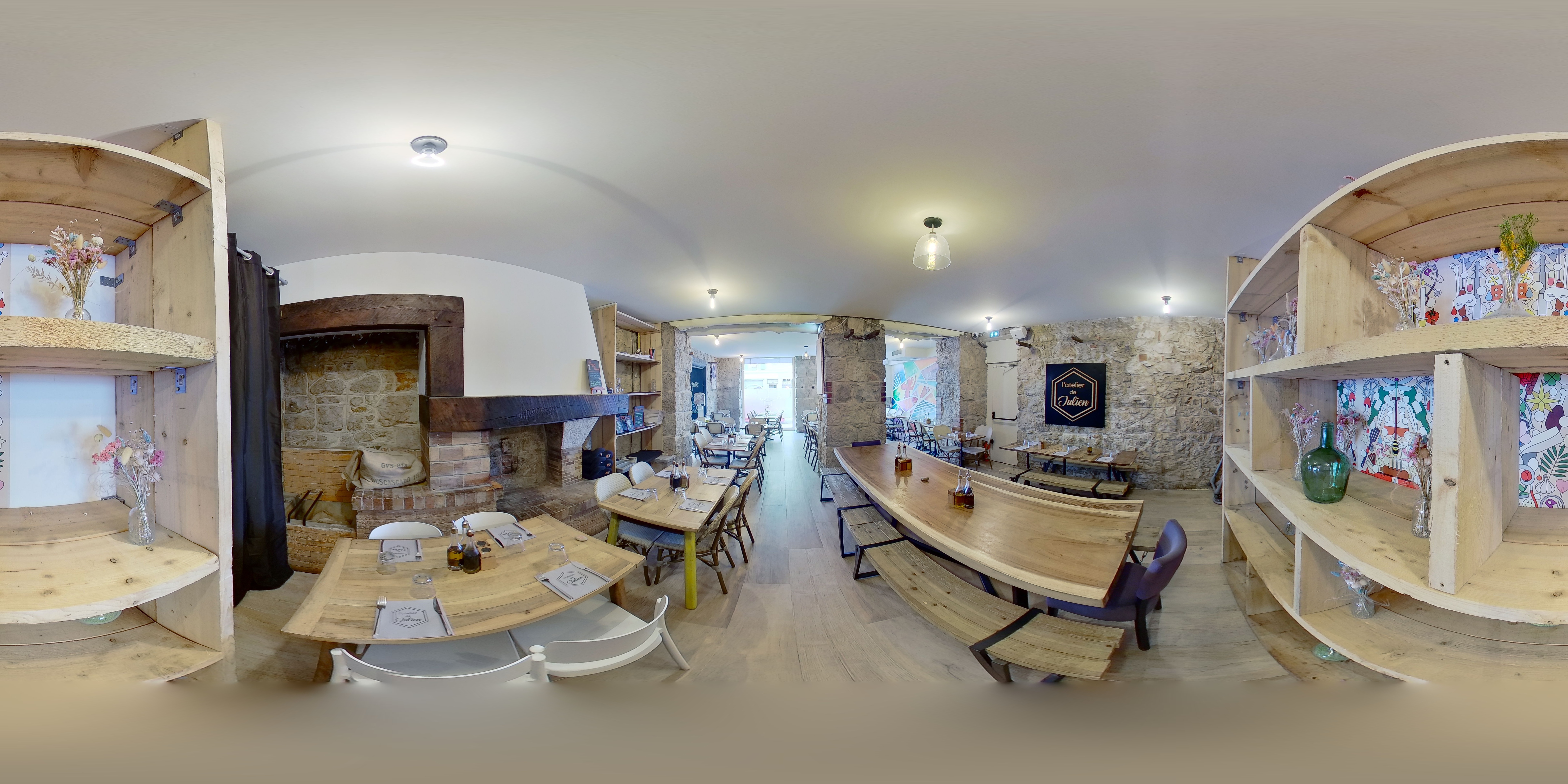Nous sommes venu manger hier en famille à L'Atelier de Julien. Notre dîner fut très long car la serveuse était un peu débordée. Premier contact avec un serveur après 20 minutes assis (trop de table pour un serveur, trop de choses à faire (genre décortiquer le poisson pour les clients, cela pourrait-être fais en cuisine)), et la cuisine a mis du temps à sortir nos plats (45 minutes pour 3 pizzas et une pêche du jour). Les boissons ont été servies10 minutes après la commande mais le vin a, du coup, eu le temps de se réchauffer en attendant les plats, dommage. Concernant les plats tout était très bon, mention spéciale pour la pêche du jour, nous n'avons pas été déçu. Les desserts étaient très bon aussi, malgré que le café soit arrivé avant les desserts, ce n'était pas dérangeant pour nous mais ça aurait pu l'être pour d'autres clients. Nous avons beaucoup attendus pour l'addition à cause d'un manque de communication des serveurs qui nous ont emmené la mauvaise note après 10 minutes d'attente, et il a fallu encore attendre pour la bonne addition qu'il avait oublié de nous emmener, la serveuse ne regardant pas notre table, nous sommes allé chercher l'addition à l'entrée. Très bon rapport qualité-prix au vu de la qualité des plats servis. Pour résumer, un très bon dîner malgré le cafouillage des serveurs (mauvaise addition, oublie de la table, mauvais desserts délivrés à notre table) et les temps d'attente. Une adresse à privilégier en semaine pour éviter les services trop compliqués à gérer.