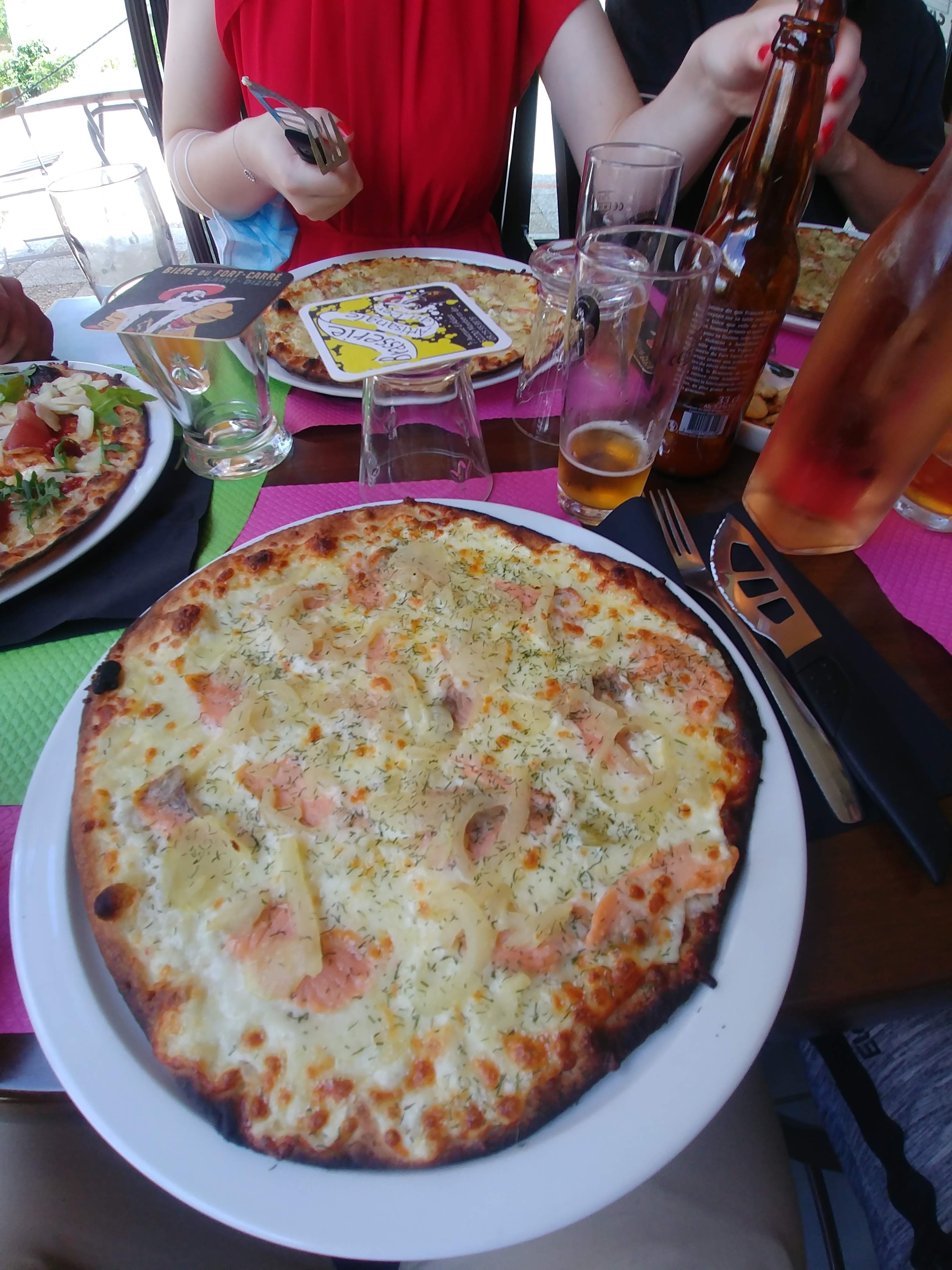 Je suis sur le retour des vacances on s'arrête avant un coucher de soleil au lac du Der qui est sur notre trajet. On trouve sur Google un restaurant qui fait des pizza en plus d'être bien noté est ouvert le Lundi ou on était là en tout cas. Bref pur bonheur puisque on nous a donner des pizza en boite déjà découpées avec une crêpe au choco pour le gosse il ne mange pas trop. Pour en revenir sur les pizzas et bien une fois revenu au lac avec nous avons pu apprécier le goût et la qualité des produits. Nous avons aimé jambon les lardons et le reblochon, même les guêpes ont dûs aimer puisque elle nous on suivis jusqu'à la poubelle du lac ;) Si j'habite à côté de chez eux il est clair que je serai revenu de temps à autre. Merci à vous.
