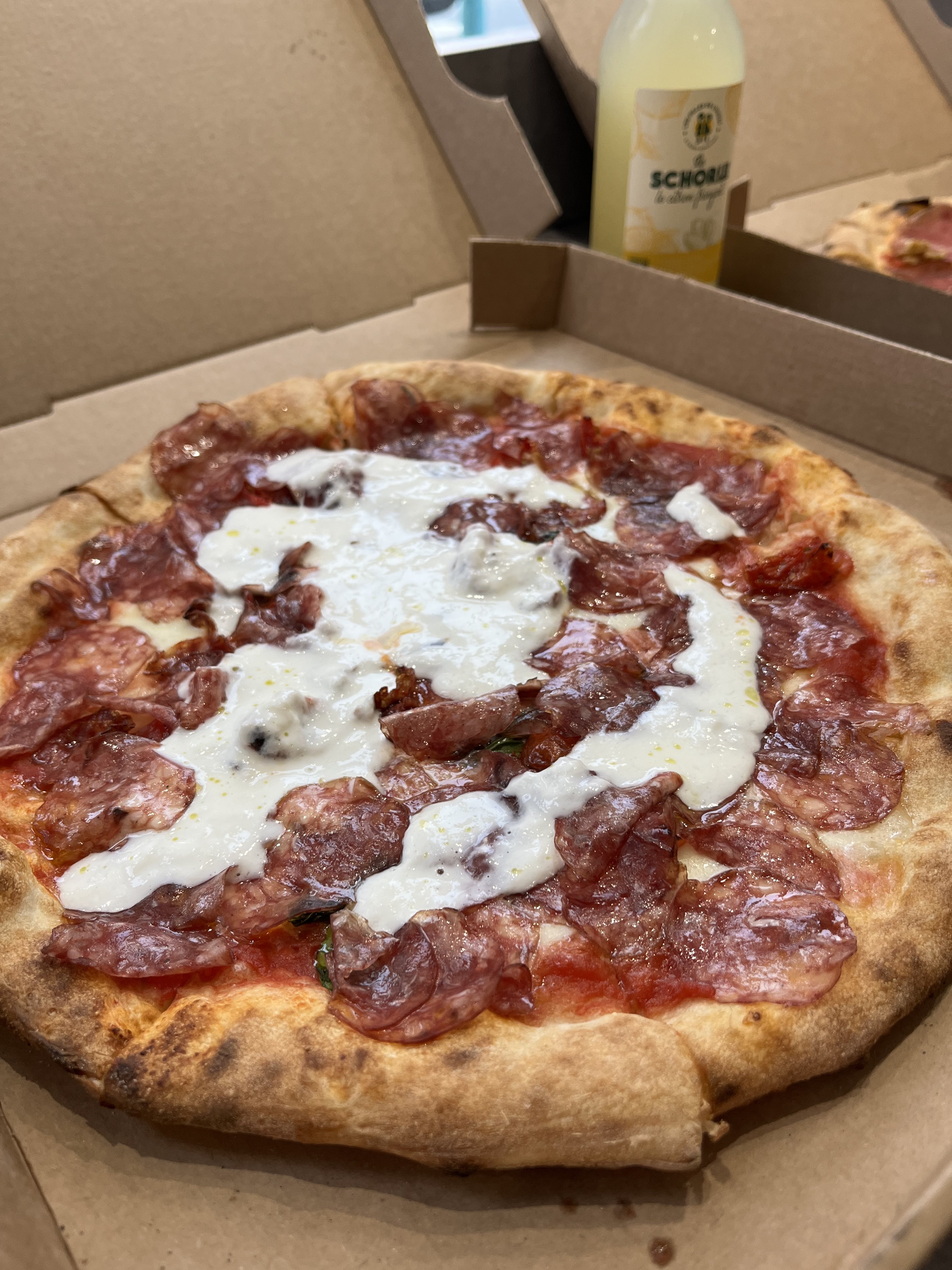 Une pizza exquise avec des ingrédients excellents! Nous avons une pizza margherita stracciatella et un tiramisu. Nous reviendrons avec grand plaisir.
