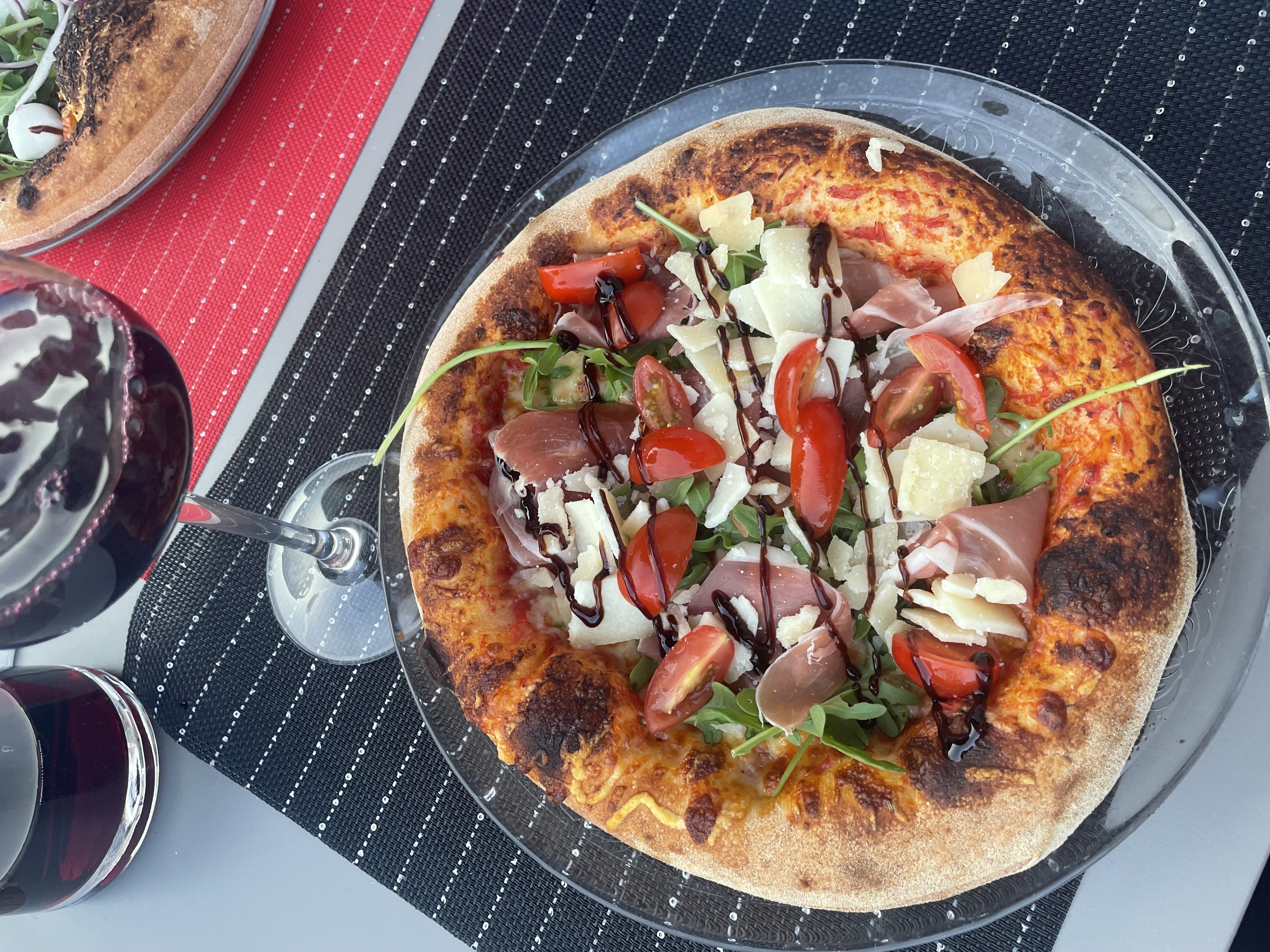 Pizzas goûteuses et généreuses et bon petit rosé pour accompagner,pouvoir manger sur place est un vrai + , bravo