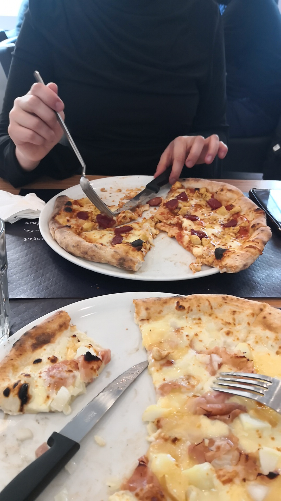 Pizzas sans grand intérêt au regard du prix avec des ingrédients de médiocre qualité. Si vous aimez les pizzas à la pâte collante à découper vous-même (avec du courage et de la foi), vous serez ravis ! Personnellement, je n'y reviendrai pas.