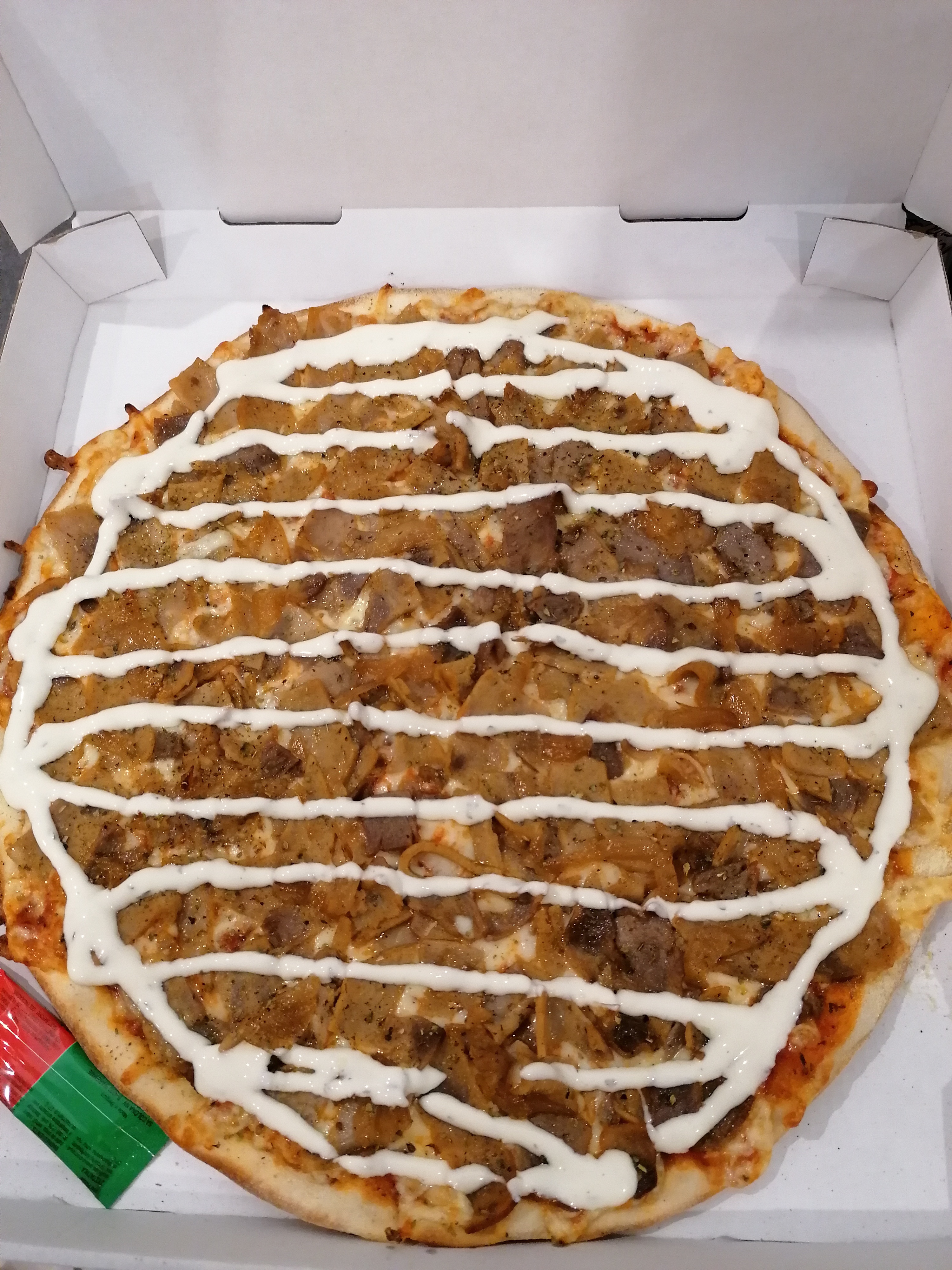 Personnel très sympathique. Garniture copieuse mais pâte sèche et cassante qui ne ressemble pas à une base de pizza.