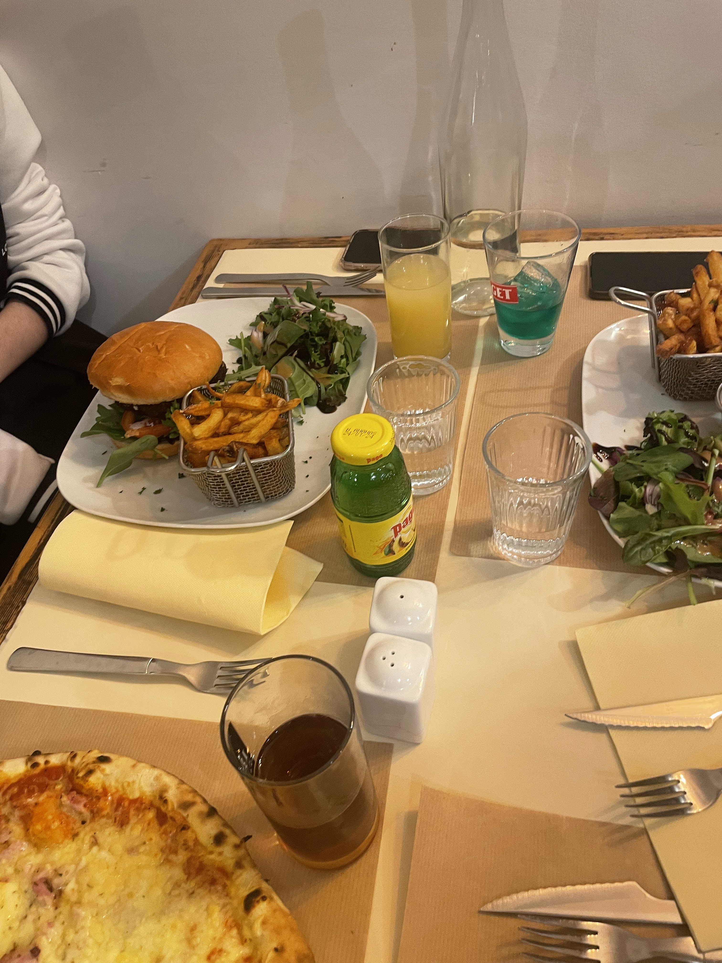 Dîner en famille, on s’est régalé c’était vraiment super! Prix abordable et les pizzas sont très bonnes pâtes moelleuses mais pas trop épaisse, bien chargée en garniture on recommande! Burger délicieux avec des frites maisons!! Petite mention pour la serveuse qui était très sympathique!
