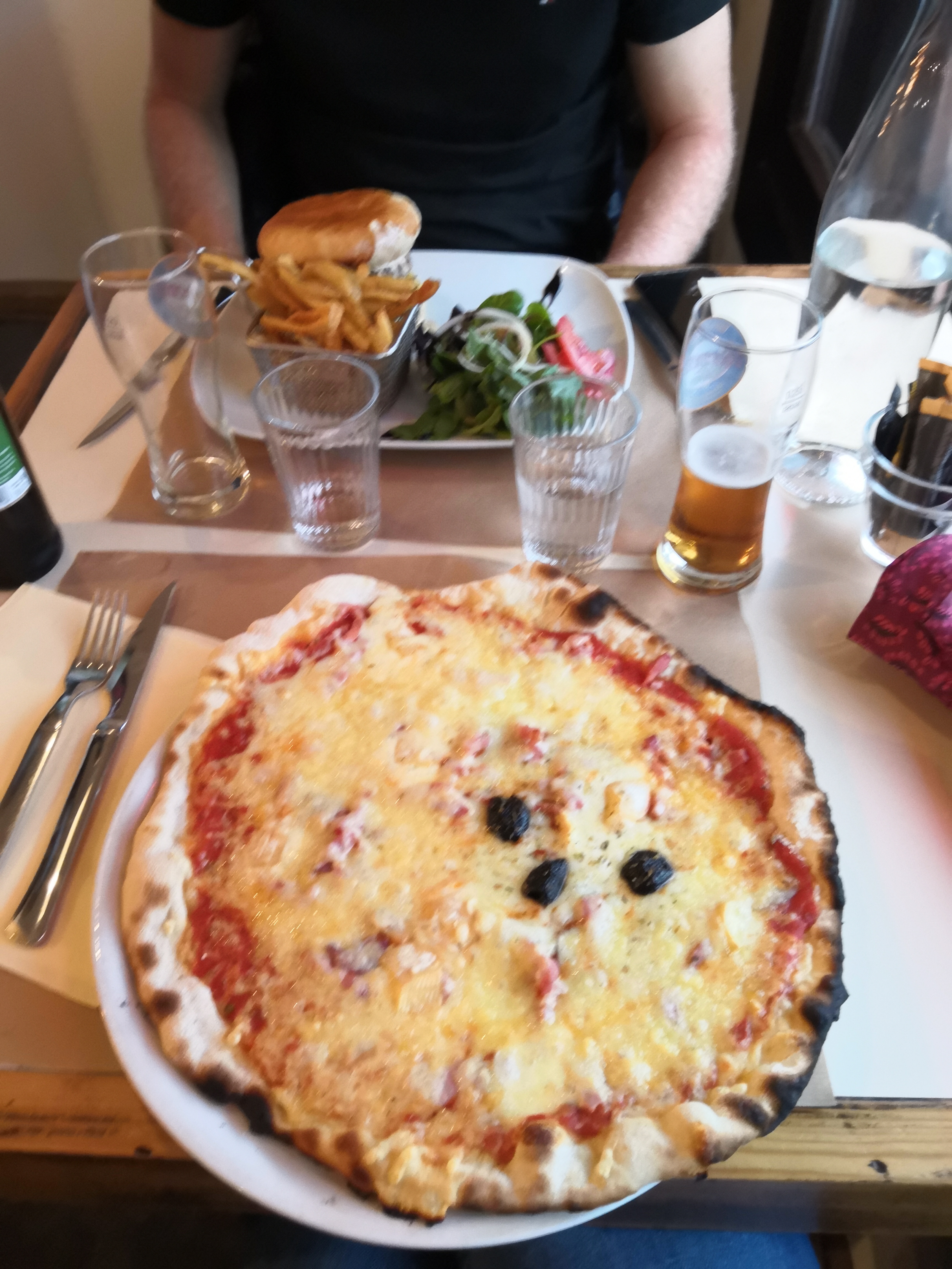 Serveurs agréables et symphatiques, pizzas délicieuses et frites maison exquises. Je recommande !