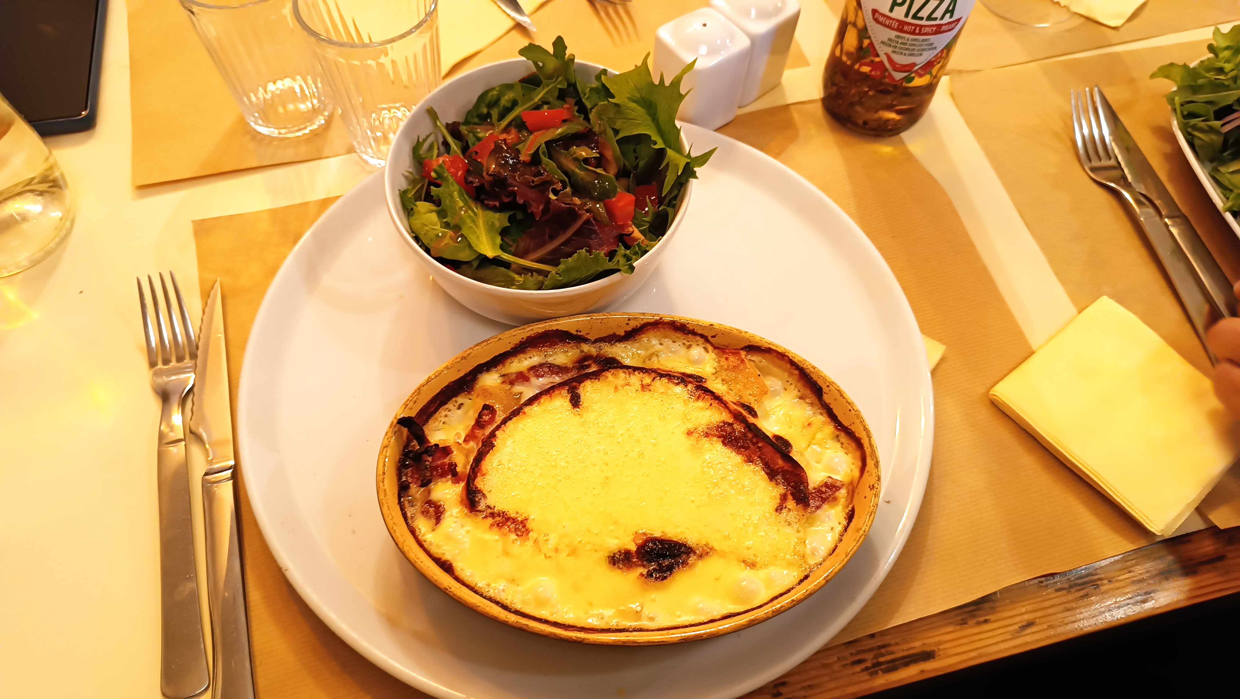 L'accueil n'a pas été très chaleureux.. Au moment de la réservation faite sur place, aucun sourire, échange très froid... et pendant le repas les serveuses n'ont pas été très agréables (échanges expéditifs, peu agréables), alors qu'il n'y avait pas beaucoup de monde... Quant à la nourriture, si les pizzas étaient correctes, le plat de ravioles était franchement mauvais. On aurait dit un plate surgelé réchauffé (ou vraiment trop cuit). Aucun goût...