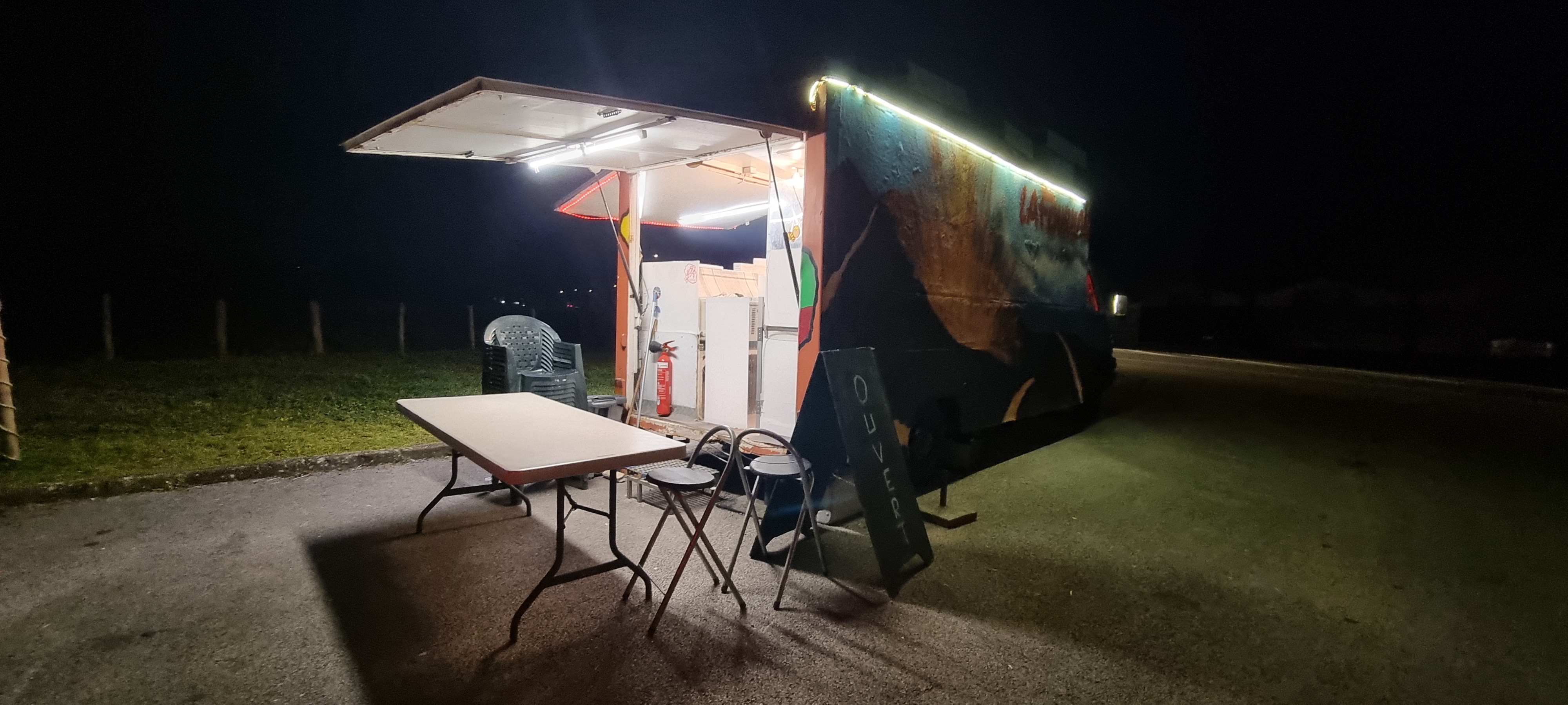 De passage à St Jean pied de port avec nôtre camping-car et après avoir était refoulé de tous les restaurants complets, nous nous arrêtons devant ce camion à pizza. Une bonne trouvaille. Des propriétaires ultra sympas. Les pizza excellentes et copieuses (du coup il nous en restera pour le repas du midi du lendemain). Une table sous les arbres pour attendre et déguster nôtre commande. Merci à vous et bonne continuation.