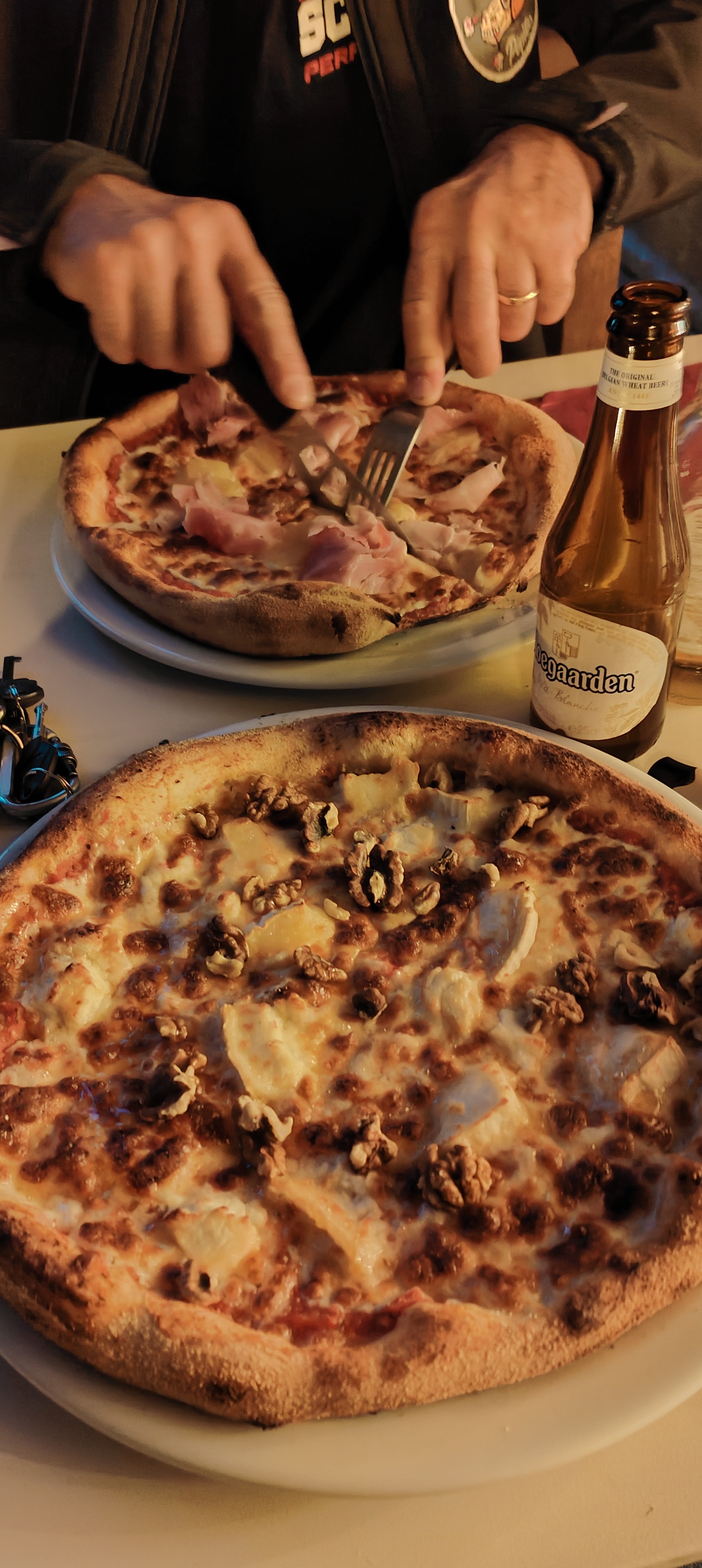 Délicieuse pizza préparée avec soin. Propriétaires charmants et belle petite ville