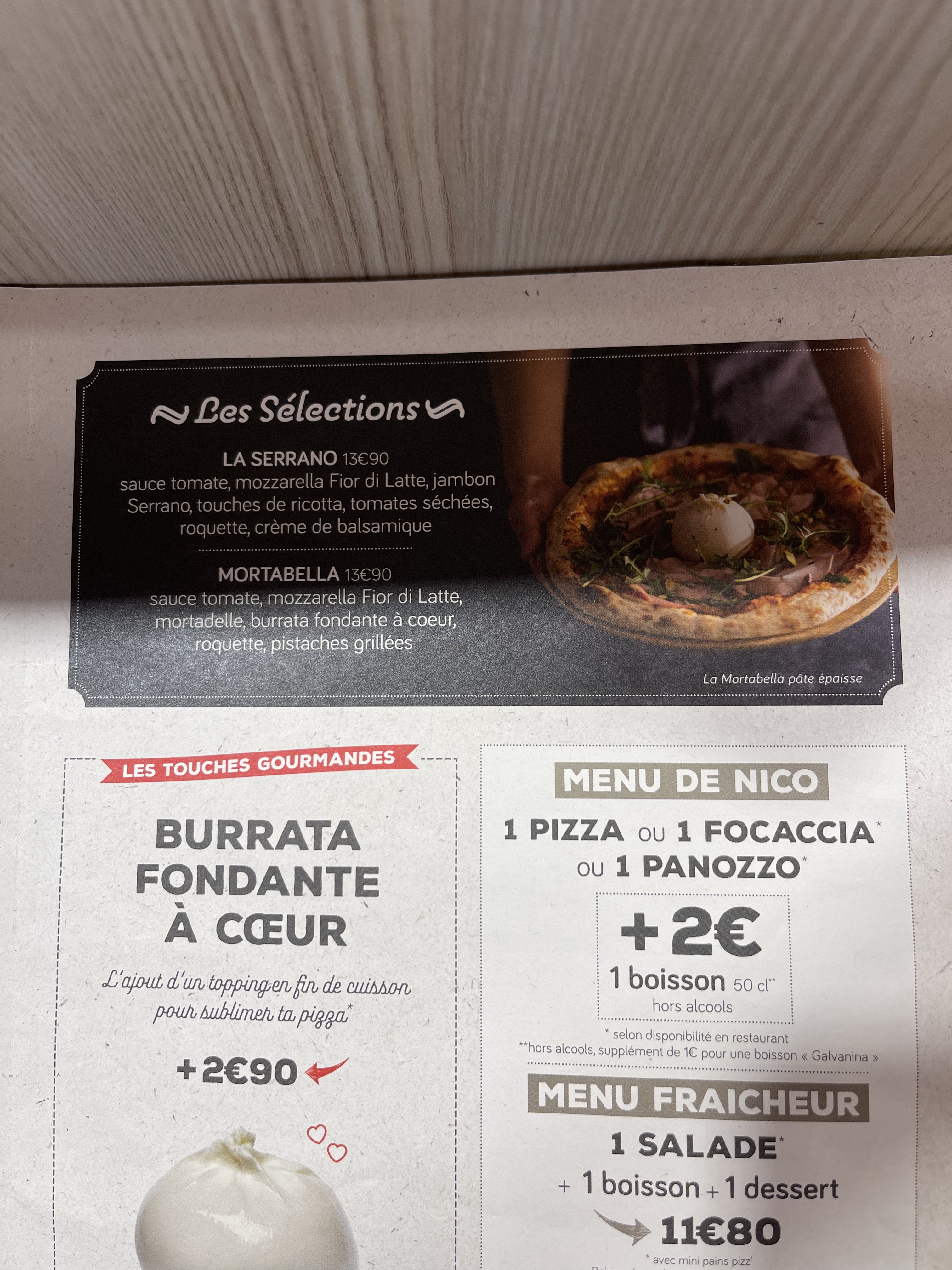 Bonsoir, Nous sommes ravis de savoir que vous avez passé une soirée calme. De notre côté, c’était la course : beaucoup de commandes à emporter, reçues en même temps. Nous ne faisons plus de panini depuis 2 mois, et les salades ont toutes été vendues sur le service de ce midi. Comme nous travaillons avec des produits frais, c’est assez compliqué d’en refaire un dimanche après-midi… La direction La Pizza de Nico Belfort