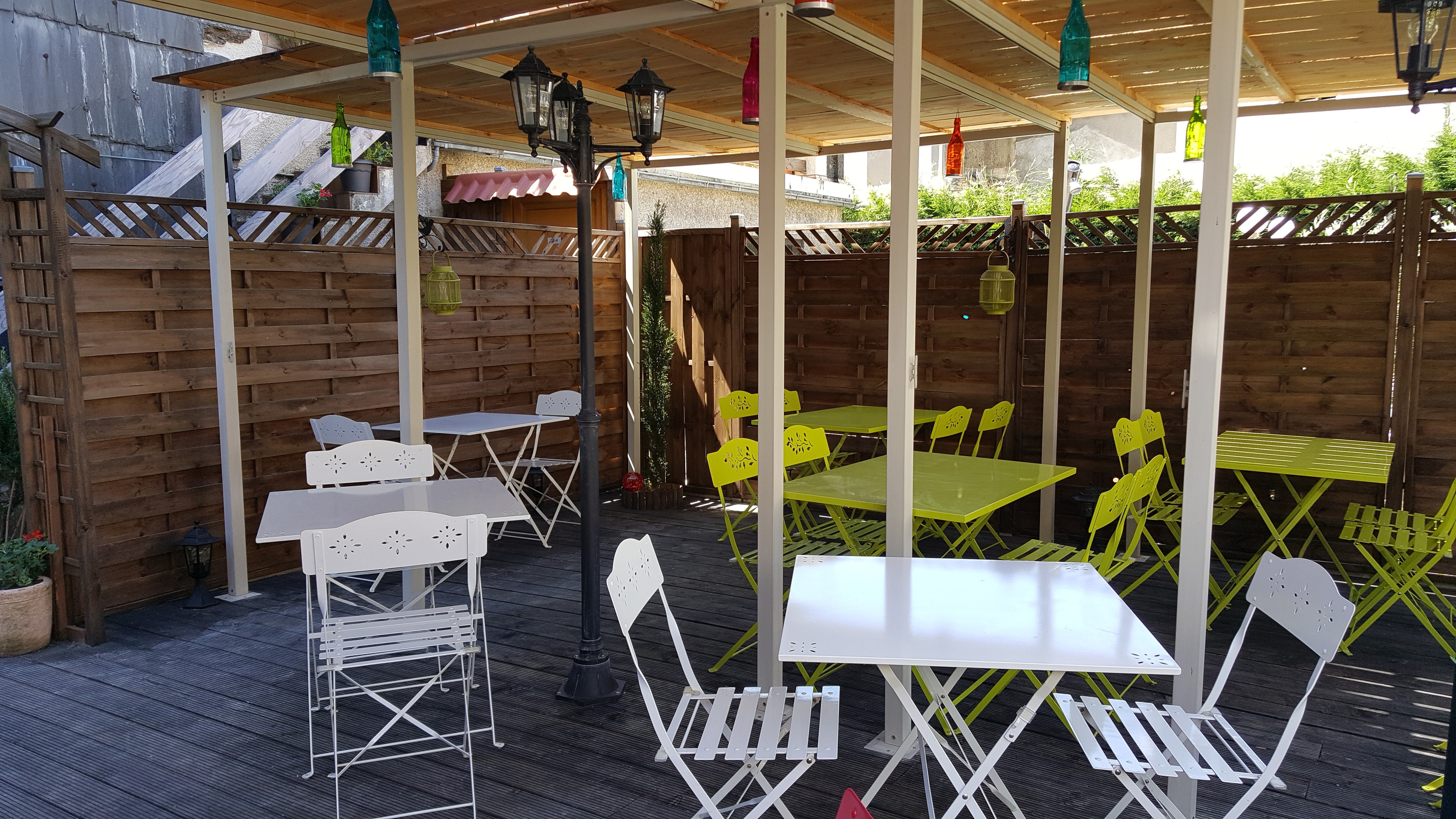 Terrasse très agréable et joliment décorée, accueil génial, super service et les pizzas étaient excellentes