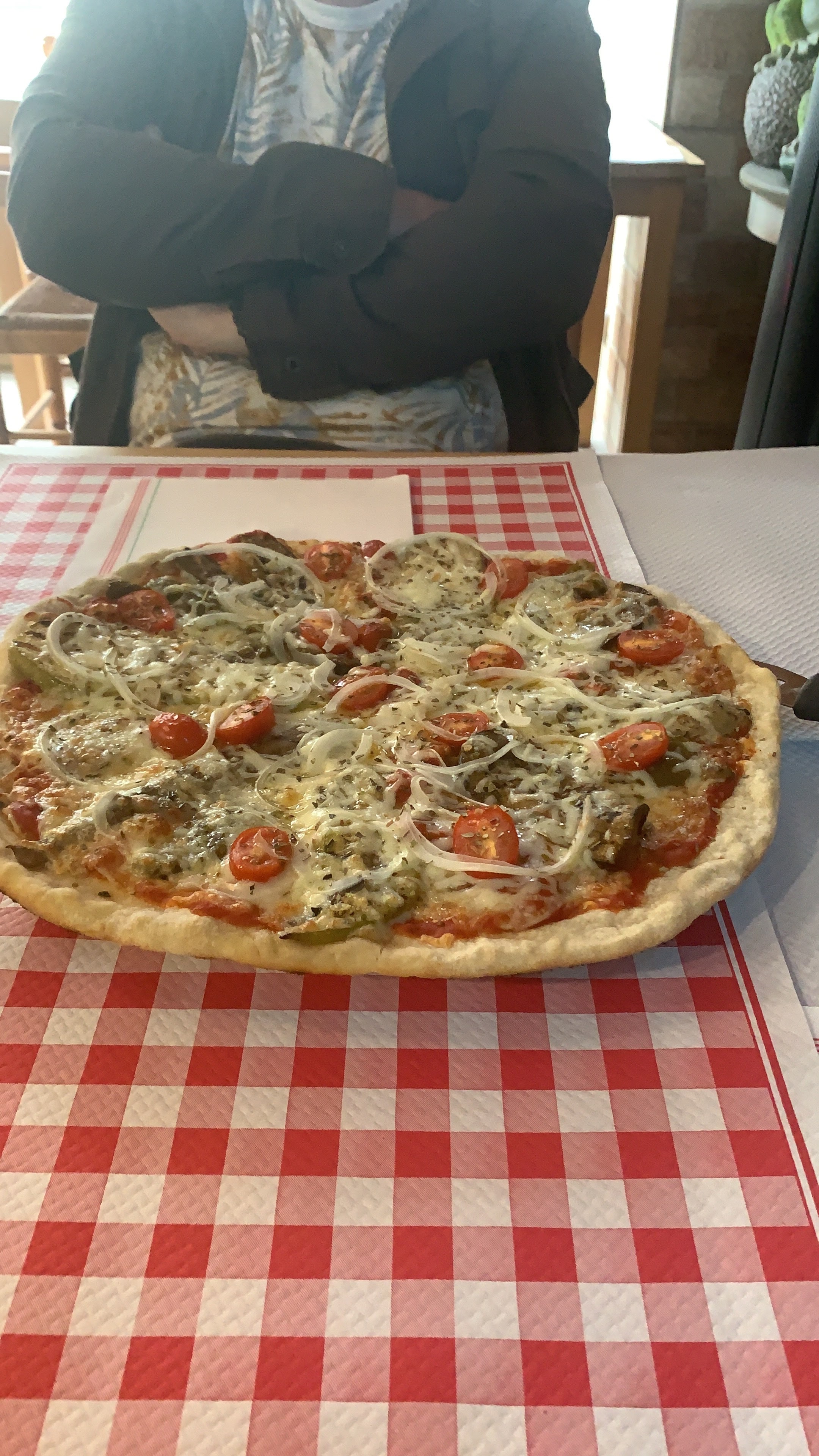 Les pizzas sont gigantesques ! La pâte est très bonne, assez fine et les pizzas sont bien garnies 😊 Accueil chaleureux et souriant, nous n'avons pas pu profiter de la terrasse à cause du temps mais elle a l'air top 👌🏻