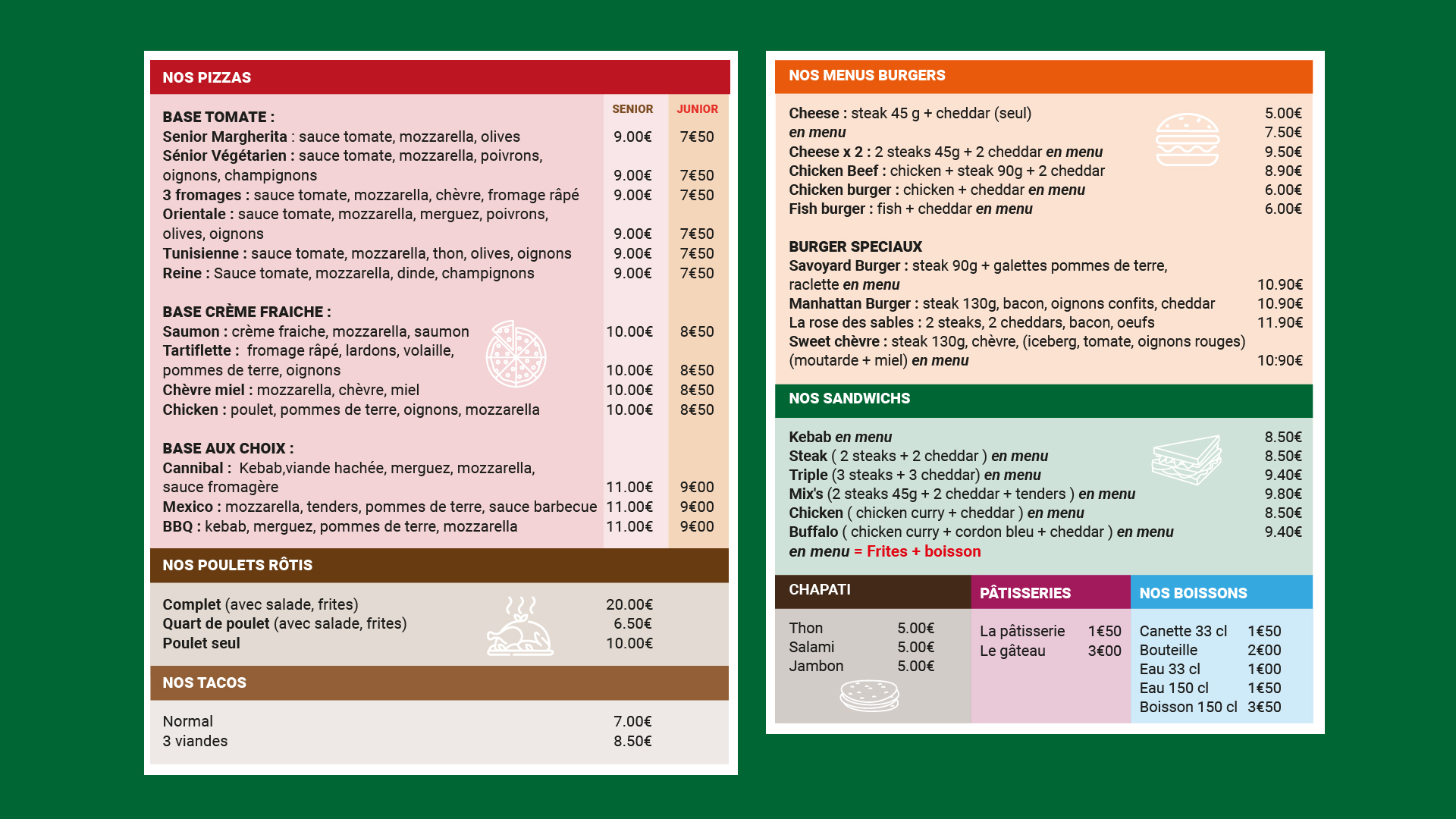 Les pizzas ? un régal Les tacos ? un régal Les hamburgers ? un régal En outre un personnel super sympa, chaleureux et avec le sourire, ça vous change des serveurs aigris des pizzerias alentours.