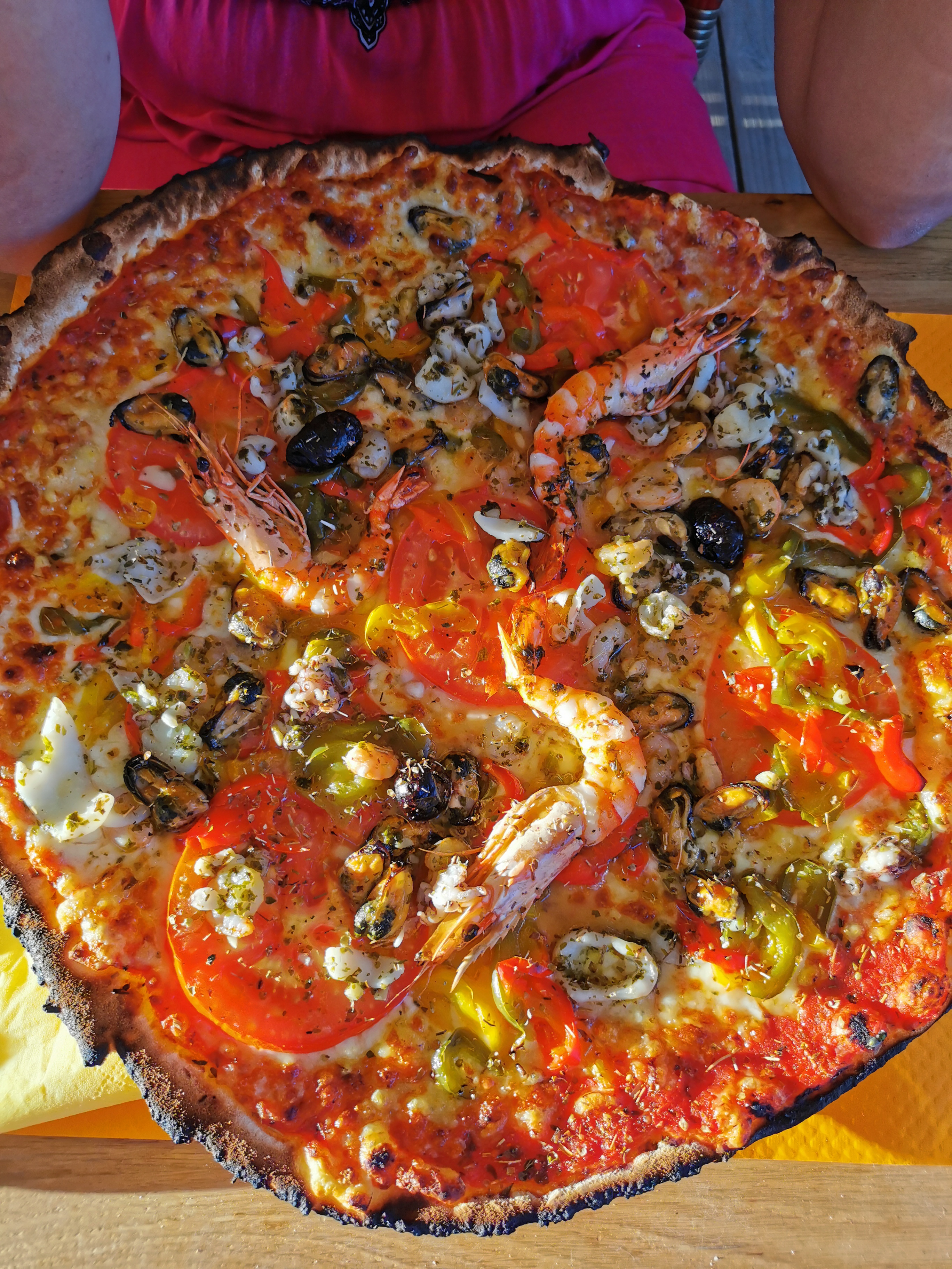 Des pizzas comme je les aime…pâte fine et croustillante, cuisson au feu de bois. Terrasse ensoleillée, patron sympa !
