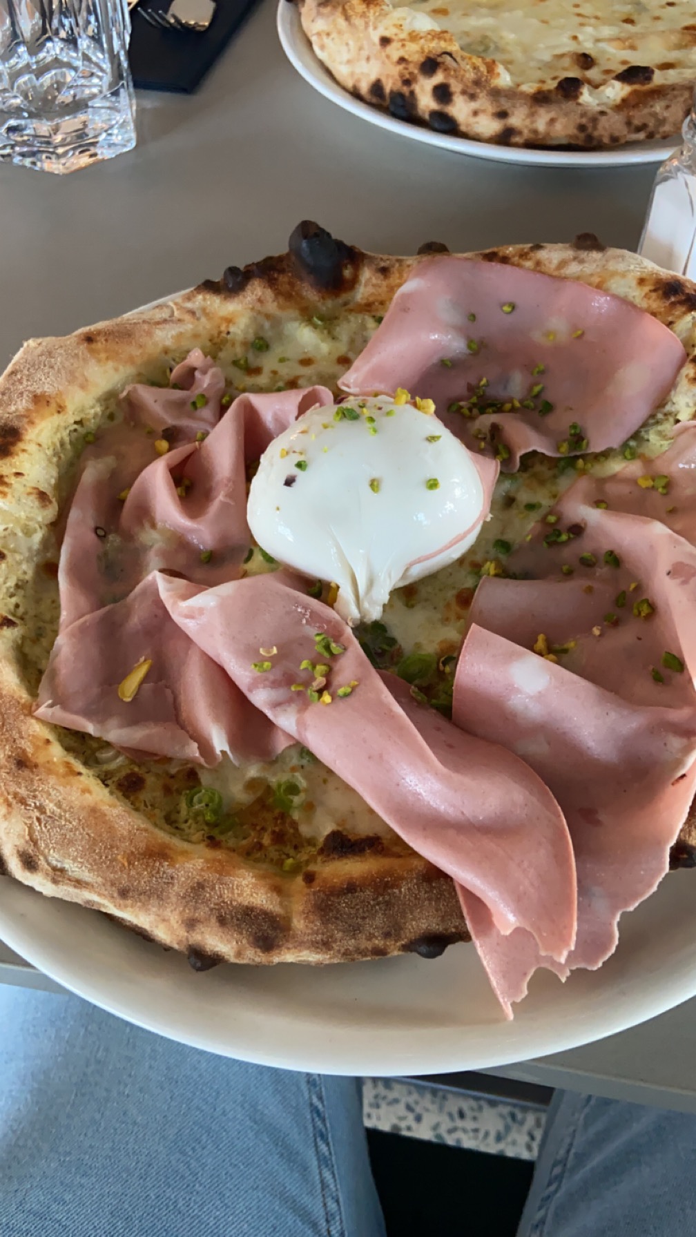 La pizza avec la coppa un peu trop léger sur la quantité de la coppa.. et un peu déçu d’avoir autant de roquette sur la pizza….